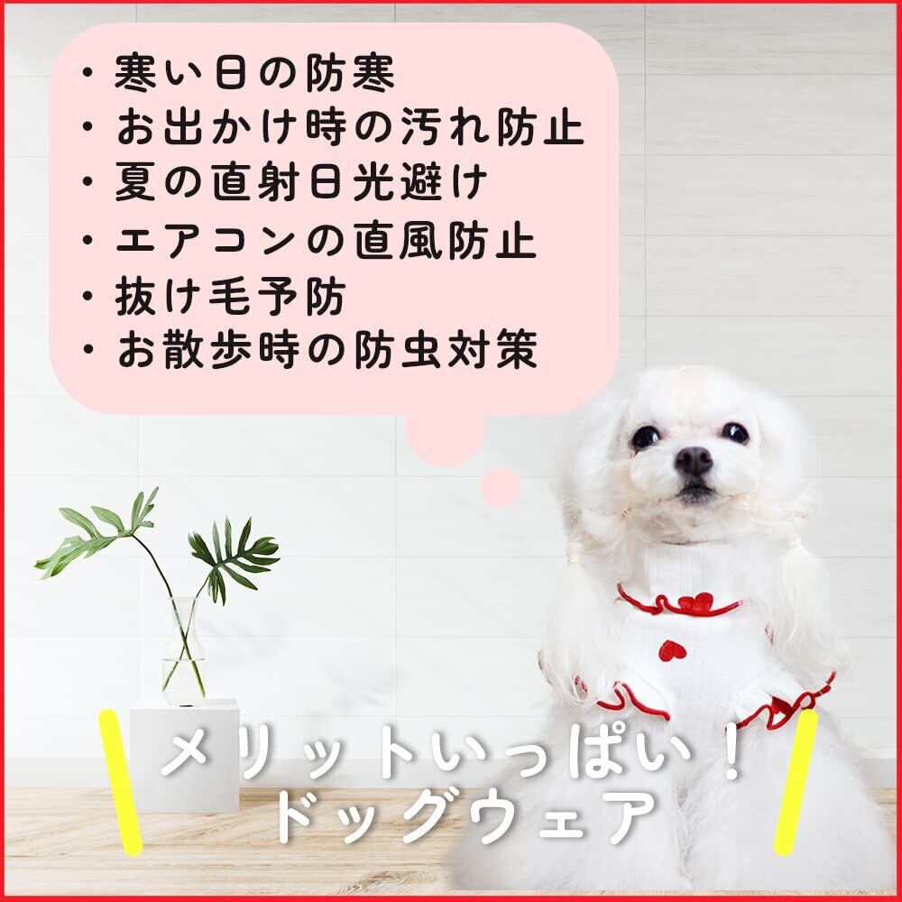 犬服を着せるメリットとして見た目の可愛さだけでなく 寒い日の防寒着としてや、お散歩時の防虫、汚れ防止、直射日光避け、抜け毛予防、エアコンんの使用時の直風防止など 色々とメリットがございます。