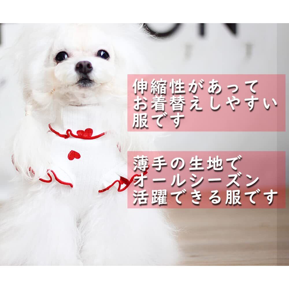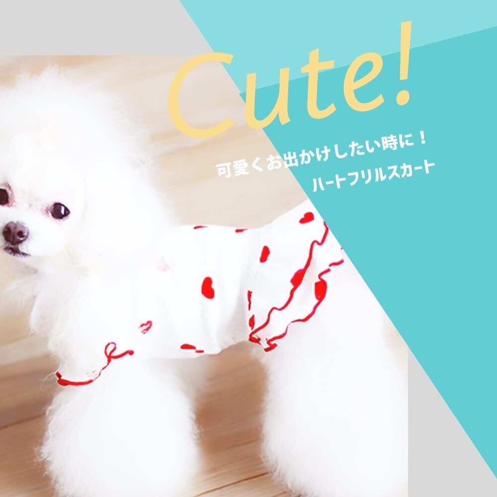 赤色のハート柄、袖口のフリルがかわいいデザインの犬の服です。 犬や猫などのペットなどにお使いただける可愛い服です。 スカートタイプの服です。