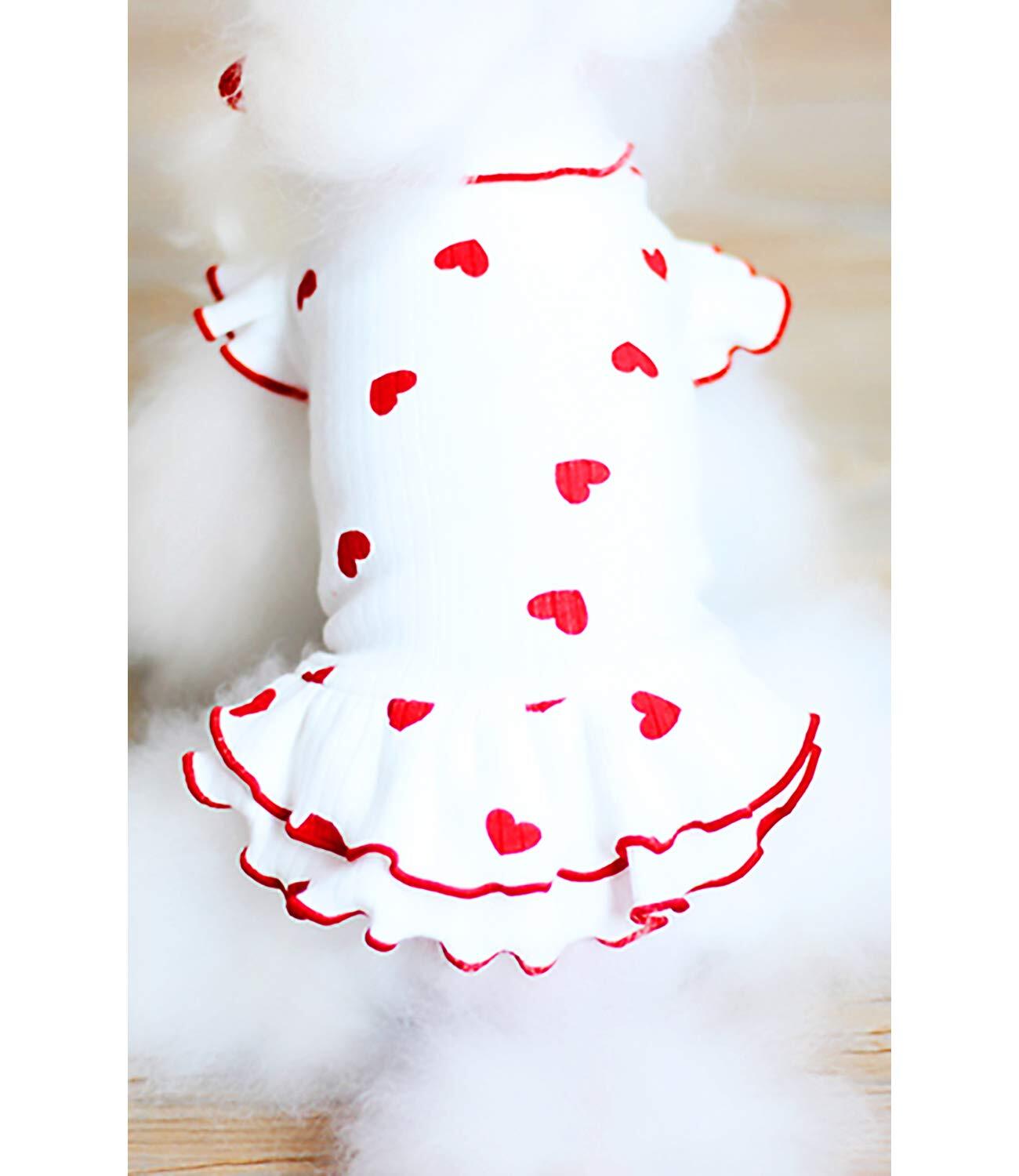 PetGround ハートフリルスカート 犬 服 かわいい 犬用服 春夏 秋冬 小型犬 中型犬 猫 ペットウェア 洋服 dog clothes (M, 赤 スカート)