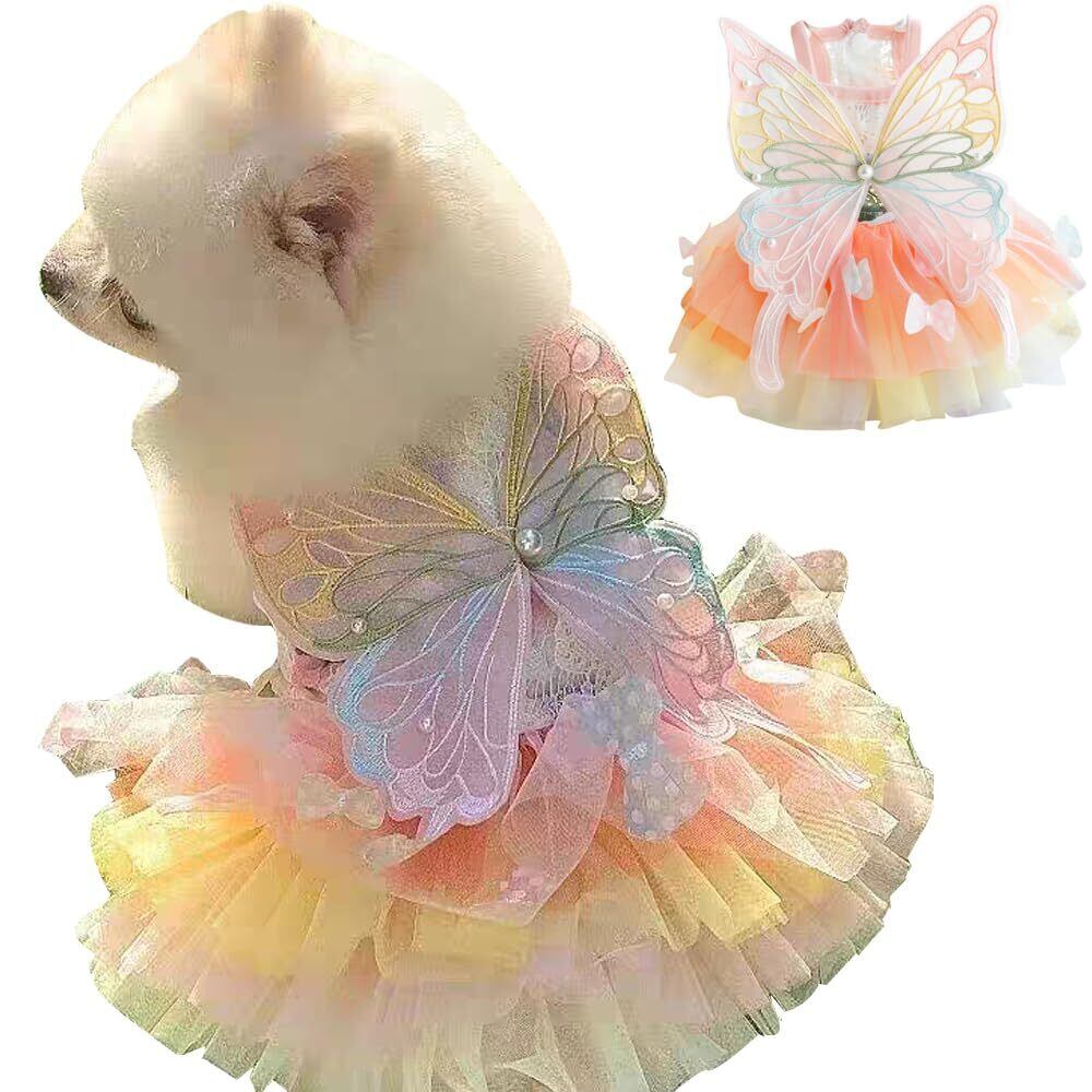 犬服 ワンピース 蝶结び チュール ペット服 犬猫洋服 お姫様 スカート 可愛いワンピース 通気性 日焼き防ぐ 春夏秋 犬の服 ウお姫様 結婚式 お祝い 記念パーティー 小型犬 プレゼントS