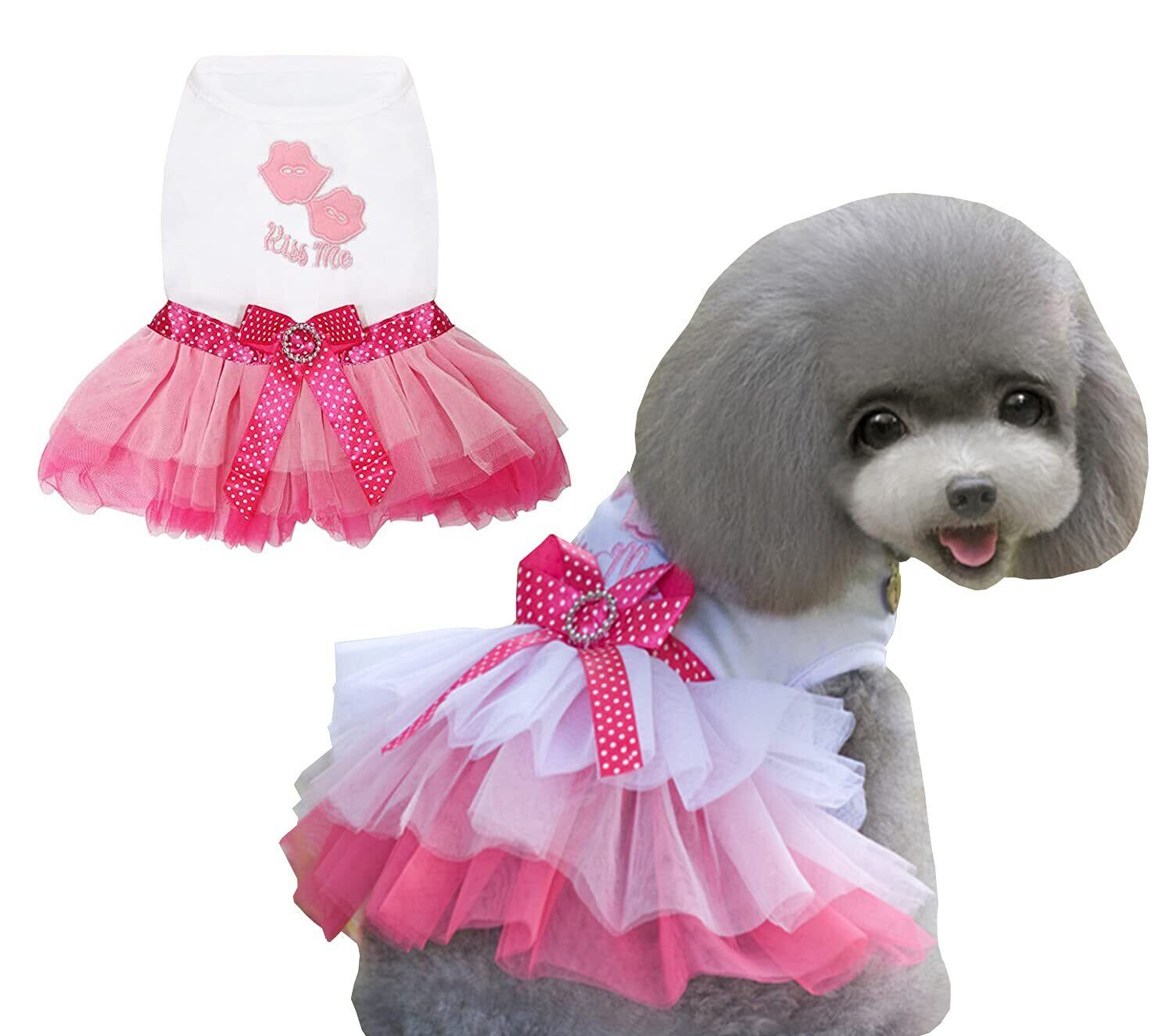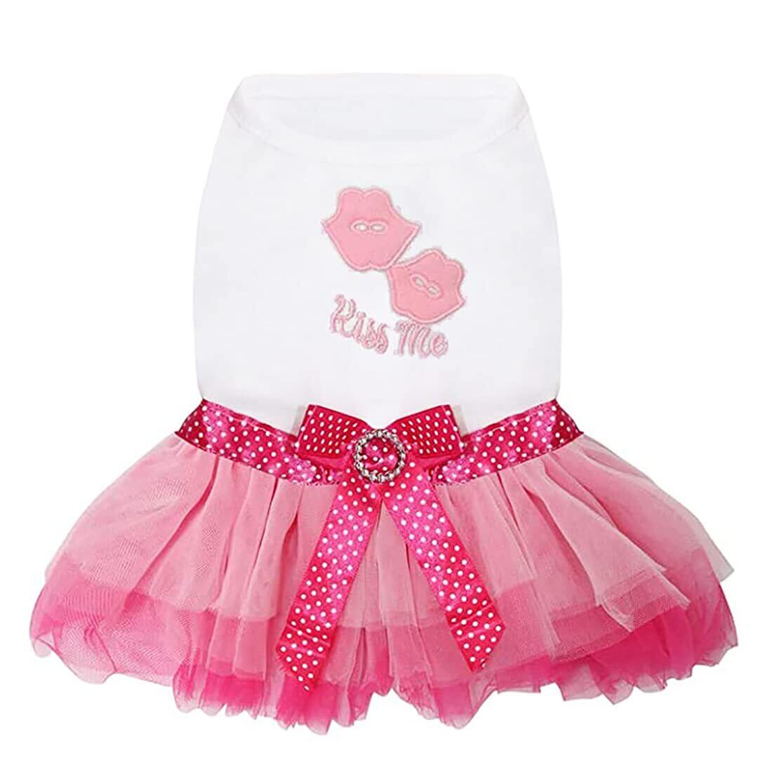 犬のドレス高級子犬のスカート犬の服プリンセスドレス結婚式のイブニングドレスツツスカート赤い唇小さな犬の女の子のための弓結びのドレス S レッド