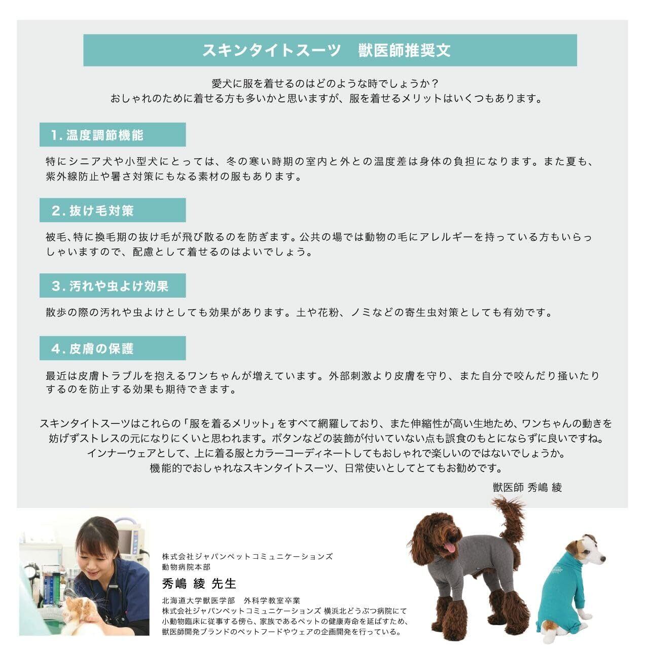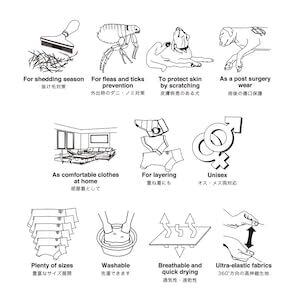 マンダリンブラザーズから発売以来大ヒットしているスキンタイトスーツ。高伸縮生地で豊富なサイズ展開なのでさまざまな犬種にご愛用いただいています。換毛期の抜け毛や皮膚のトラブル時など飼い主の悩みを解決!重ね着でも一枚でもおしゃれに活躍してくれる大人気アイテムです。