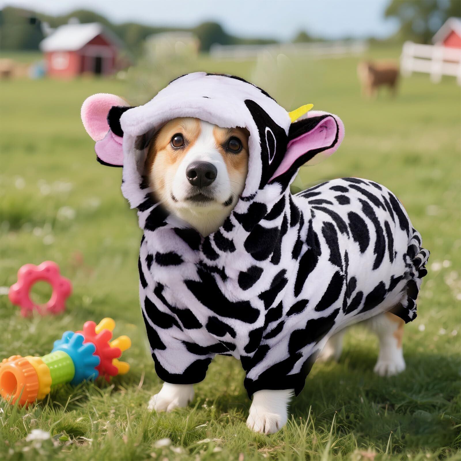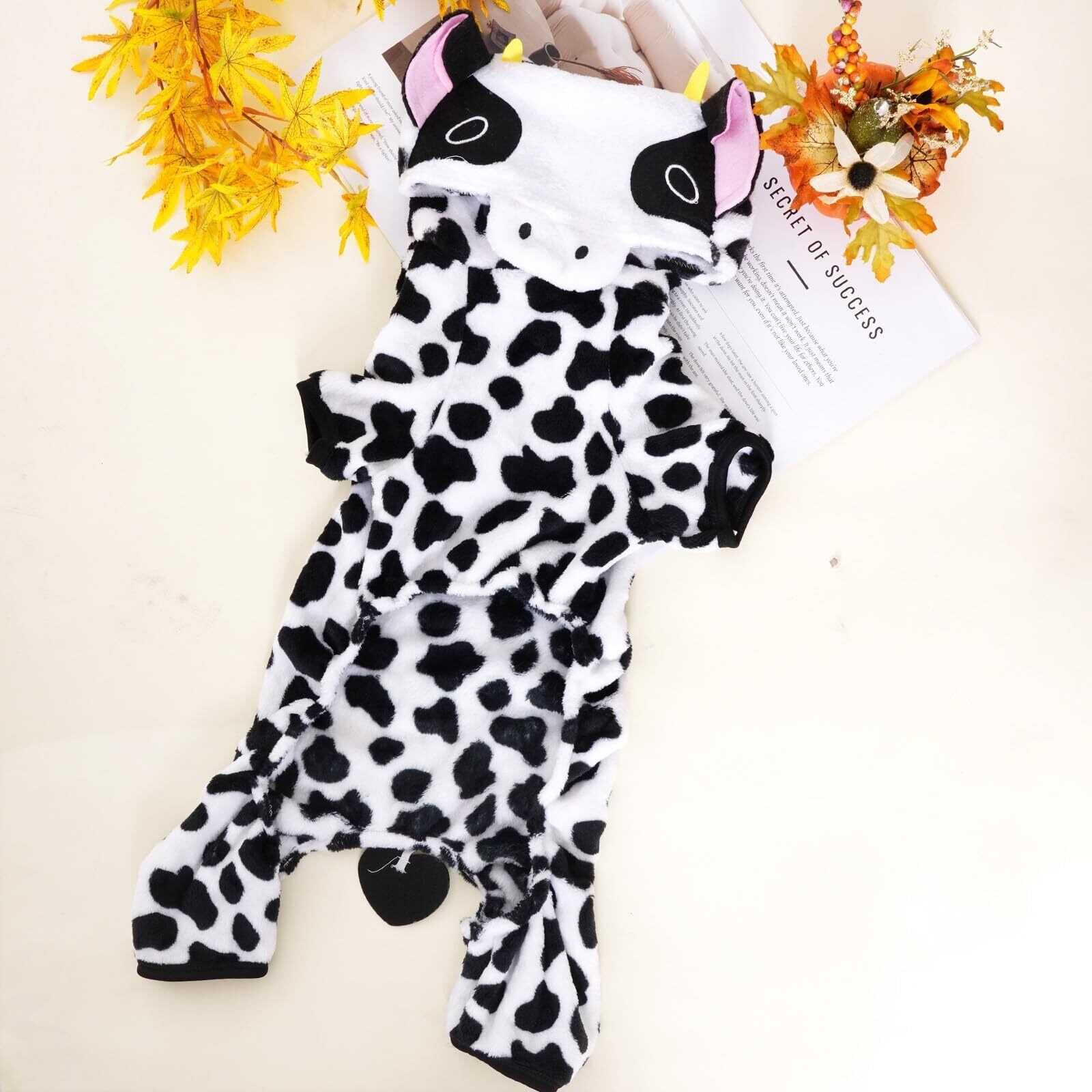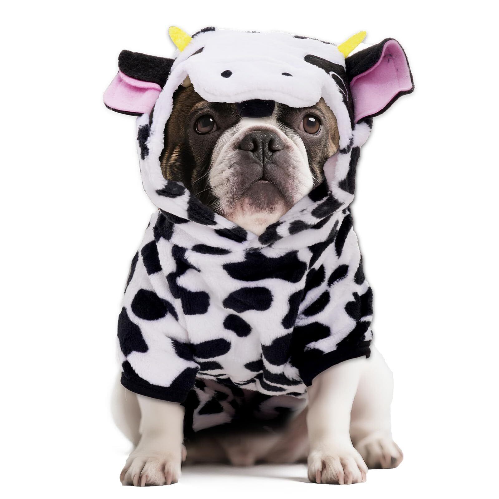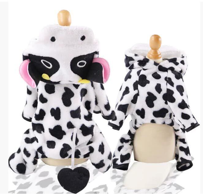 DERAYEE ペット 服 乳牛 2026年 丙午 干支 年 牛に変身 馬年 年賀状 記念 撮影 秋 冬 犬 猫 防寒 暖かい ふわふわ コスチューム コスプレ 小型 お正月 (乳牛, M)