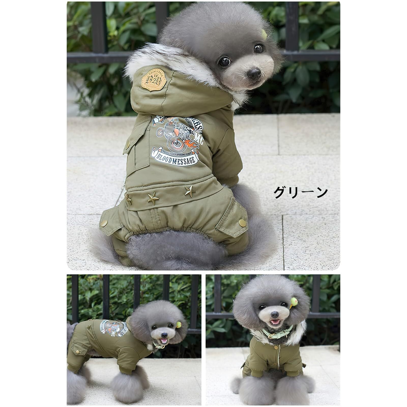 【SeitenFB】犬の服 ロンパース つなぎ カバーオール フード付き 暖かい 裏起毛 柔らかい ふわふわ ペット用品 DOG服 犬服 犬用防寒着 ペット服 洋服 前開き スナップボタン 小中型犬服 バイク グリーン XL