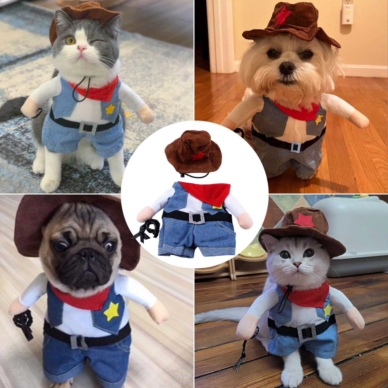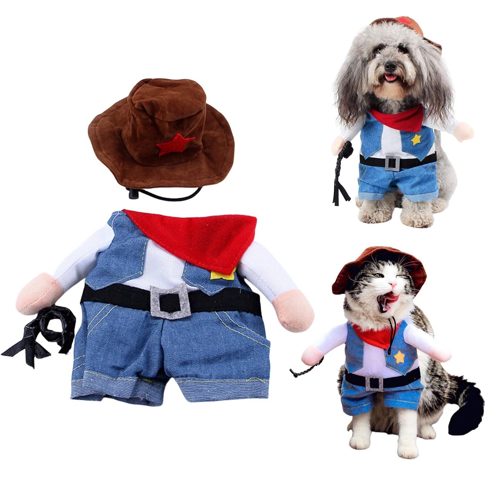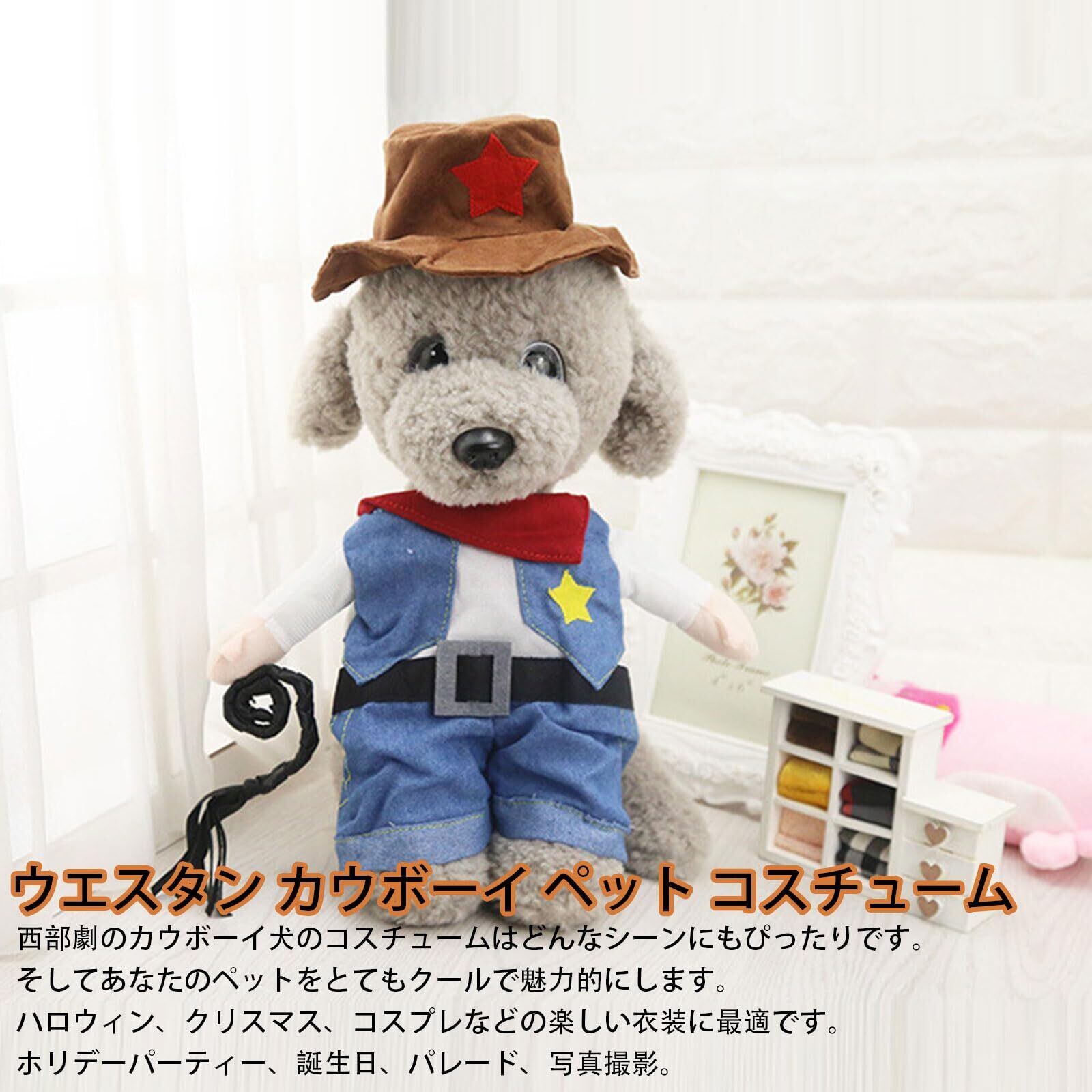 Kingsie ペット服 コスプレ 犬服 猫服 ハロウィン クリスマス 面白い かわいい カウボーイ 2足歩行 ジーン コスチューム 小型犬 中型犬 仮装 変身服 ギフト (S)
