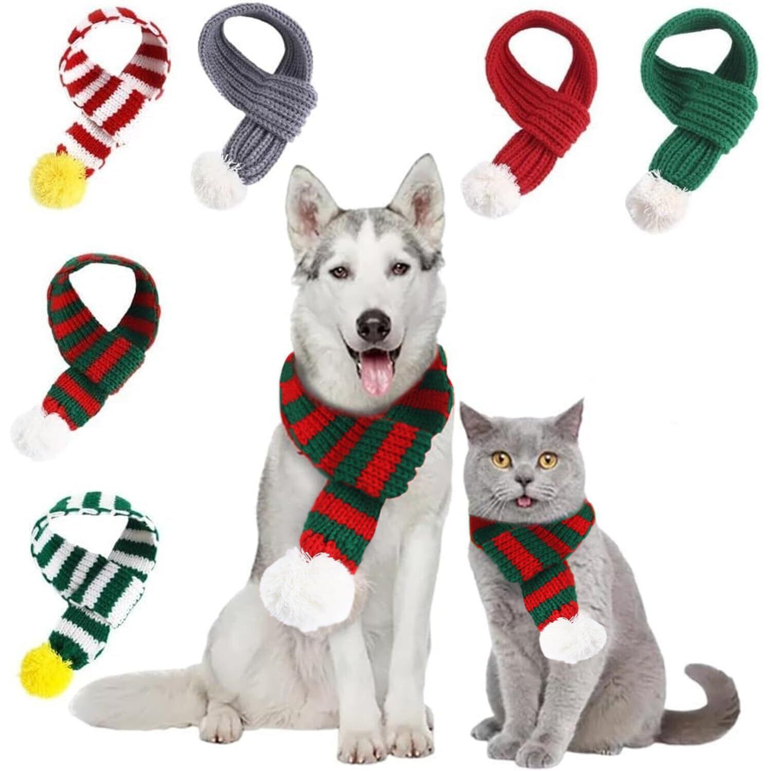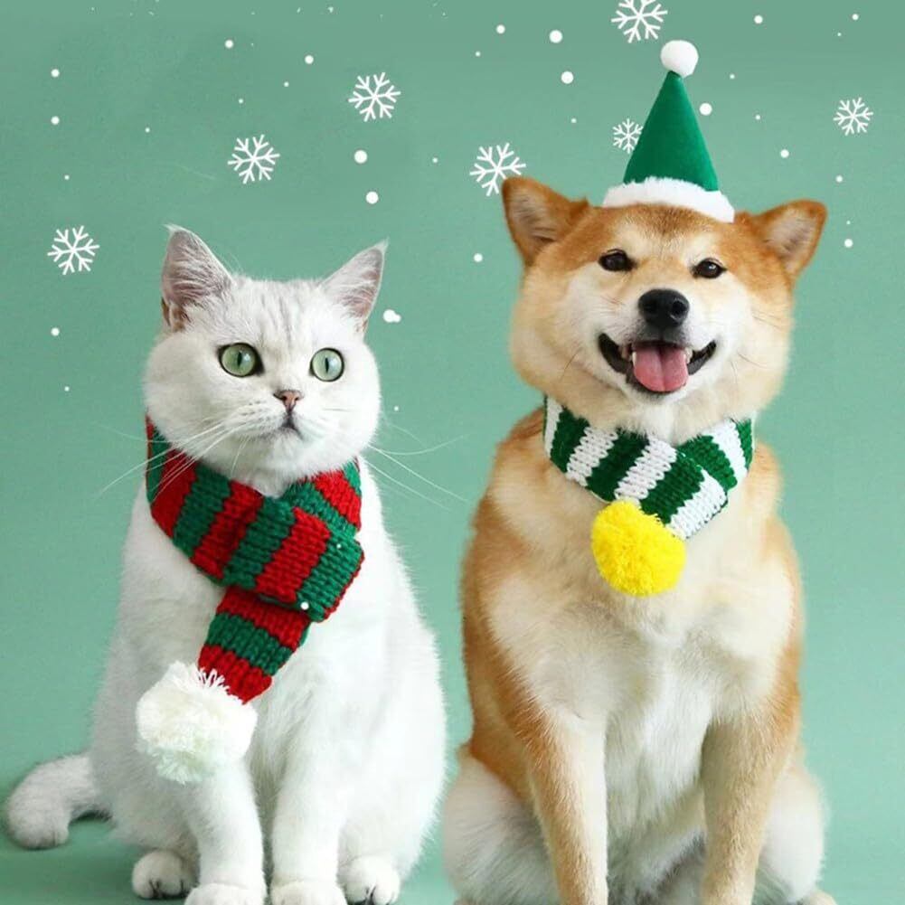 犬 猫 マフラー 秋冬 防寒 ペットマフラー ニット 犬の服 保温 厚手 可愛い 中小型犬 コスプレ 変身 写真 コスチューム 暖かい 寒さ対策 お出かけ お散歩 撮影 プレゼント ペット用品 (L,赤グリーン)