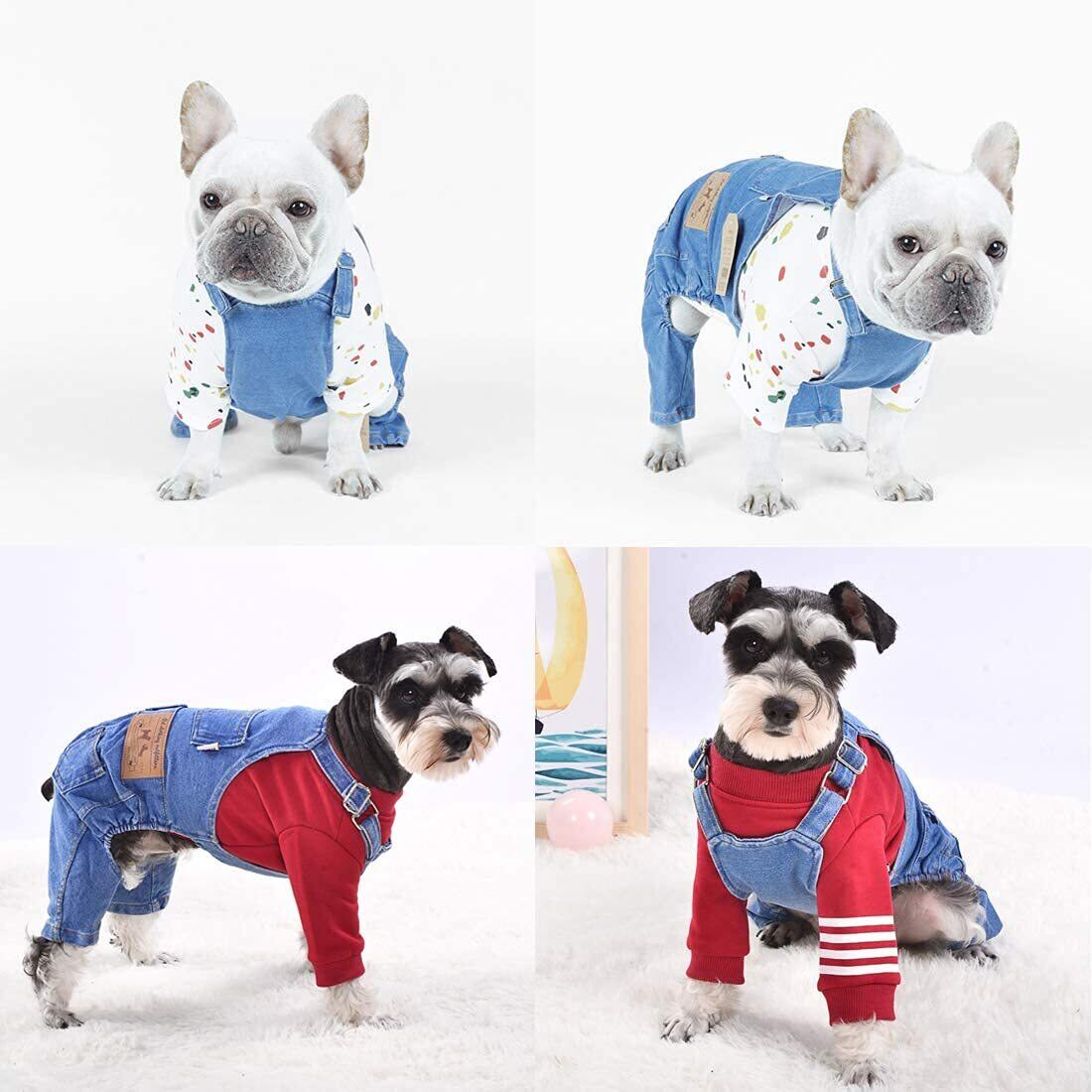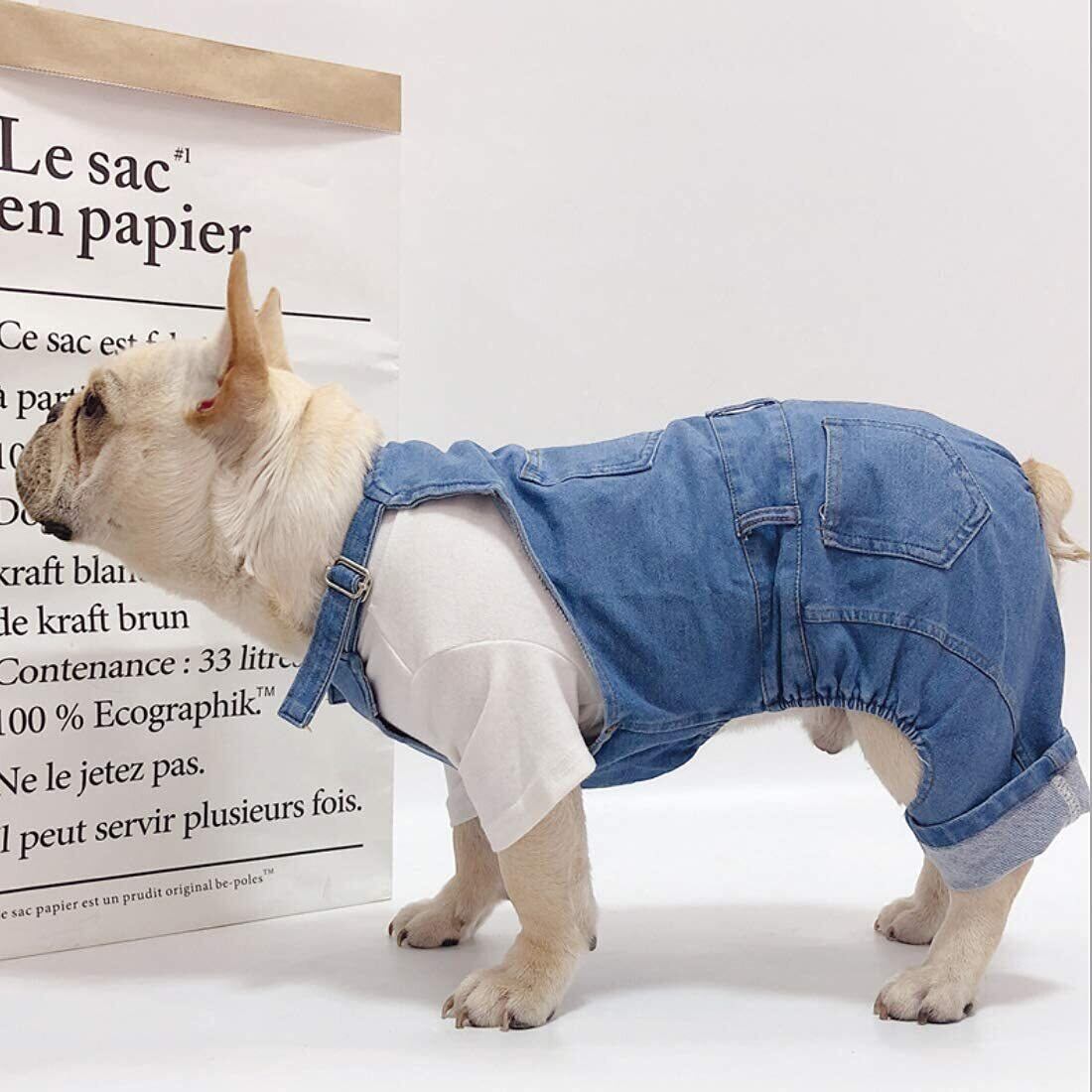 S-Lifeeling 犬用デニムオーバーオール - 小型犬・猫用伸縮性のあるおしゃれなデニム服、日常散歩、パーティー M