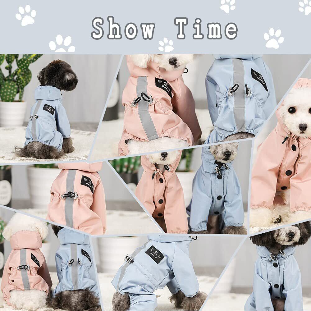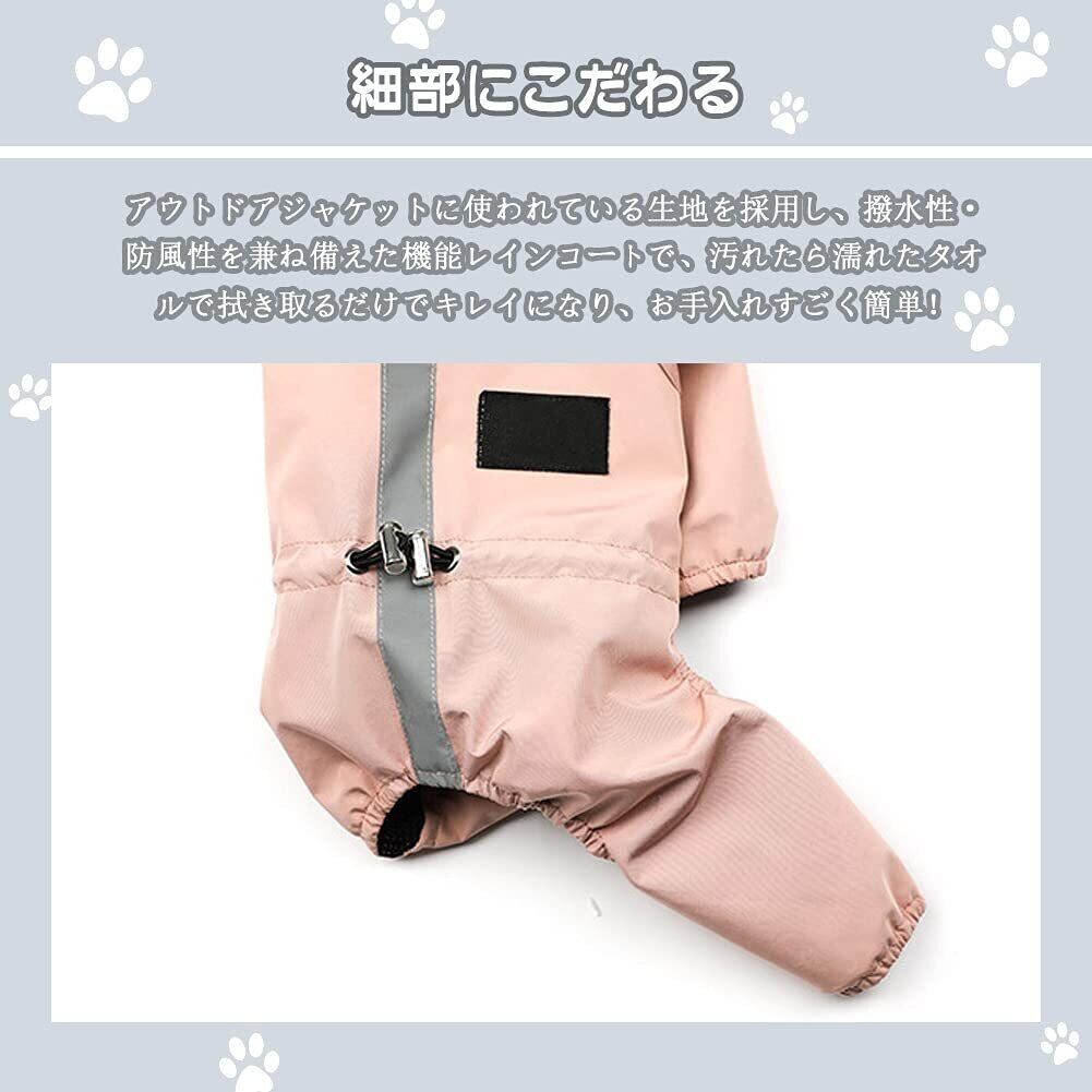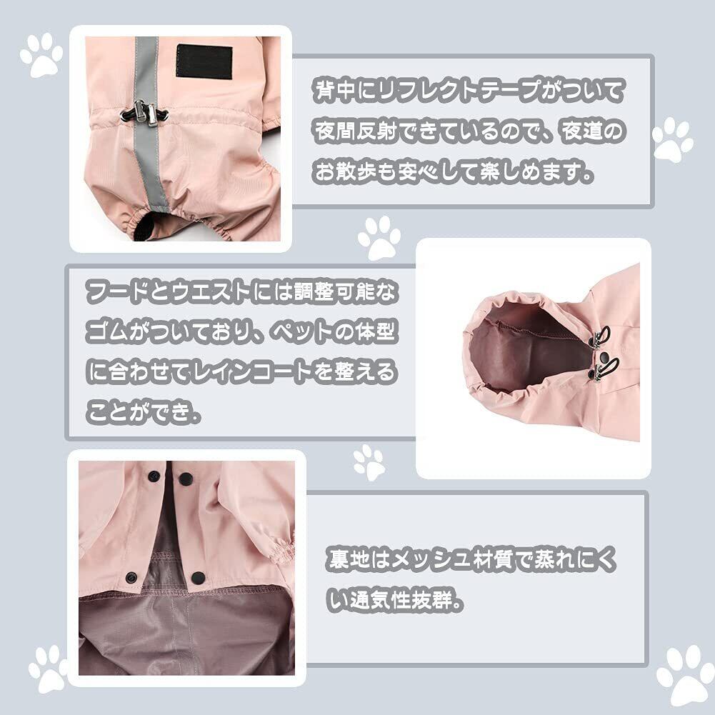 Bidason 犬 レインコート 防水 防風 帽子付き パーカー ペットの服 ドッグウェア 4本足 中小犬用 通気メッシュ リード穴あり ゴム付き 汚れ防止 夜間反射 散歩 お出かけ 日焼き防ぐ 四季通用