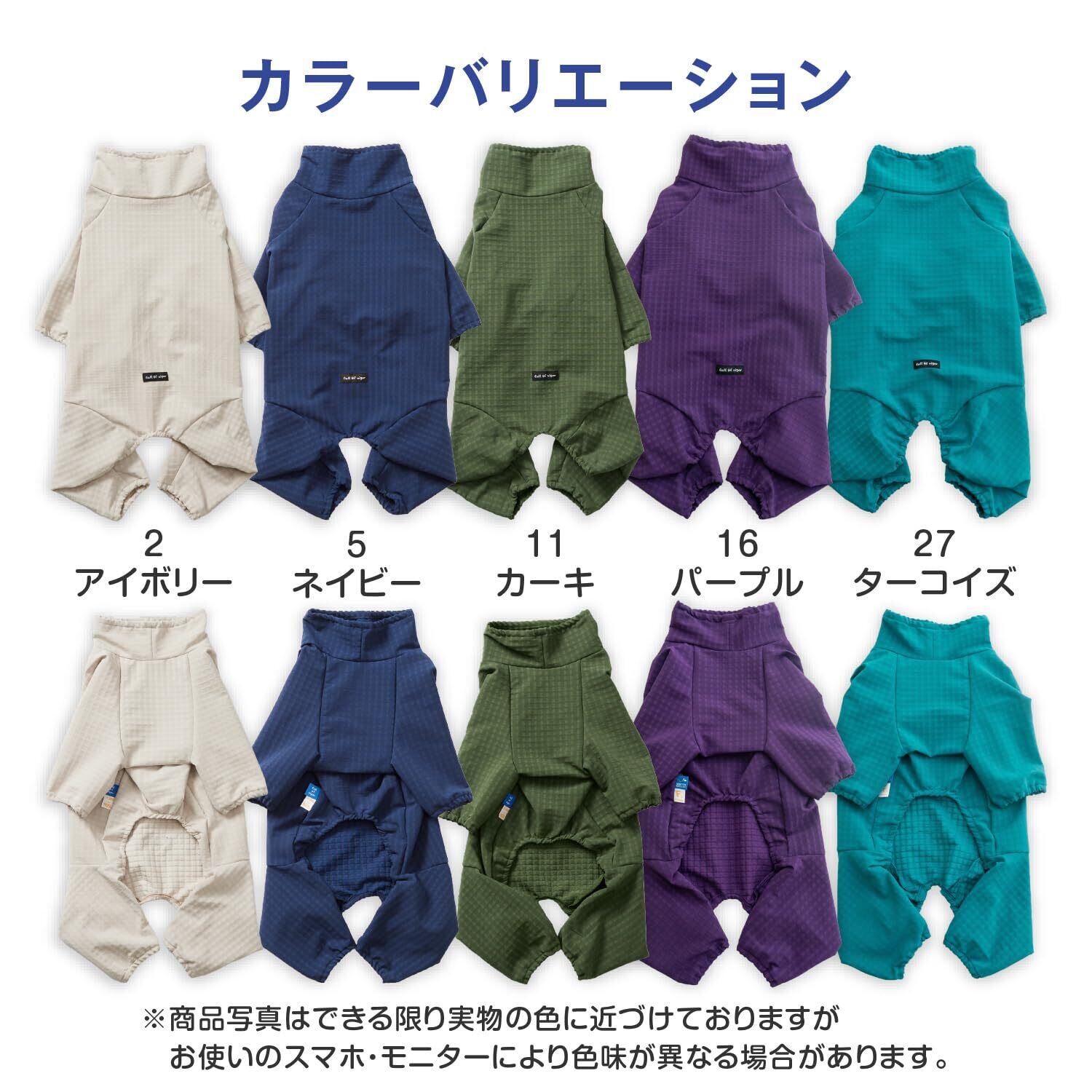 寒さから、愛おしい我が子を守るあたたかさ。 寒い季節は、ペットの体温管理がとても大切です。 シャカシャカ音がしないから、お散歩も快適 突然の雨や泥はねも、撥水機能で汚れをシャットアウト。 撥水加工を施した生地は、糸1本1本に水を弾く処理を行い、中程度の雨や水しぶきから愛犬をガードします(※防水ではないため強い雨には非対応)。日常の散歩や軽い雨の日に適した機能です。 撥水効果は熱によって再活性化します。脱水後は乾燥機の使用がおすすめ。乾燥機がない場合は陰干し後、当て布をして低温アイロン、またはドライヤーの温風を当ててください。 ドッグプレイは、元気に遊ぶ愛犬のために動きやすさと機能性を追求したウェアシリーズ。散歩やドッグラン、雪遊びやアウトドアでも汚れを気にせず思いきり楽しめます。 お手入れも簡単で、毎日のケアがぐっとラクに。 雨の日・雨上がりのお散歩に。 4方向への優れたストレッチ性・撥水性・防風性・透湿性を兼ね備えた裏フリースの撥水ラッシュガード。 雨でもお散歩がかかせない、寒くても元気に遊びたい子におすすめ。 表側は撥水、裏側は薄手のフリースで保温してくれます。 C0撥水加工で、リサイクルポリエステルとROICAポリウレタンを使用したこだわりのサステナブル素材です。 ●本体:STORMFLEECE BACK GRID(ポリエステル93%・ポリウレタン7%) ●日本製:MADE IN JAPAN ●伸縮性(5段階):4 ●厚さ(5段階):3 ●お洗濯について:手洗い又は、洗濯ネットを使用。当て布をして中温。ファスナー・ボタン・面テープがある商品は、しっかり止めた状態で洗濯をしてください。 のラッシュガードは、川遊びの浅瀬・雪遊び・雨上がりの泥はね対策など、日常のアウトドアシーンを想定して設計されています。 なお、水泳のように全身が濡れる状況では、生地が重くなりズレやすくなるため、泳ぐ用途での使用はおすすめしておりません。 国内の縫製工場と連携して、一つひとつ丁寧に仕上げています。心地よい着心地をお楽しみください。 対象犬種:ゴールデン レトリバー、ダルメシアン、ラブラドール レトリバー、ボーダー・コリー、ハスキー、ジャーマンシェパード、スタンダードプードルなど