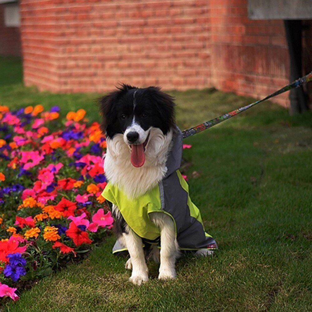 Umora 犬用レインコート カッパ 雨具 通気 帽子付 散歩用 小型犬 中型犬 大型犬(グリーン+グレー XL)