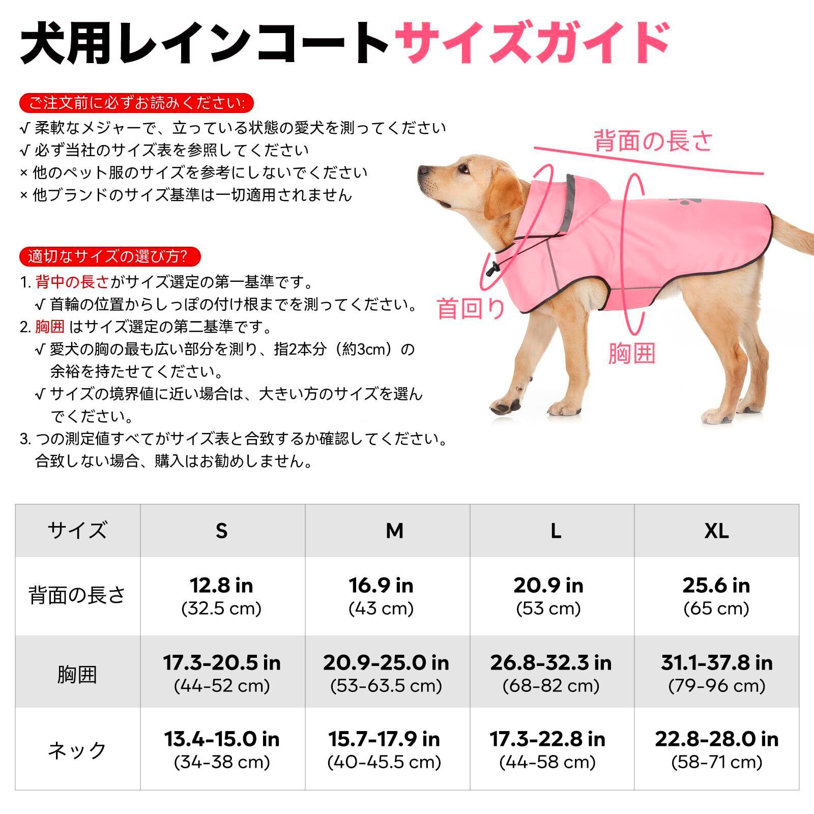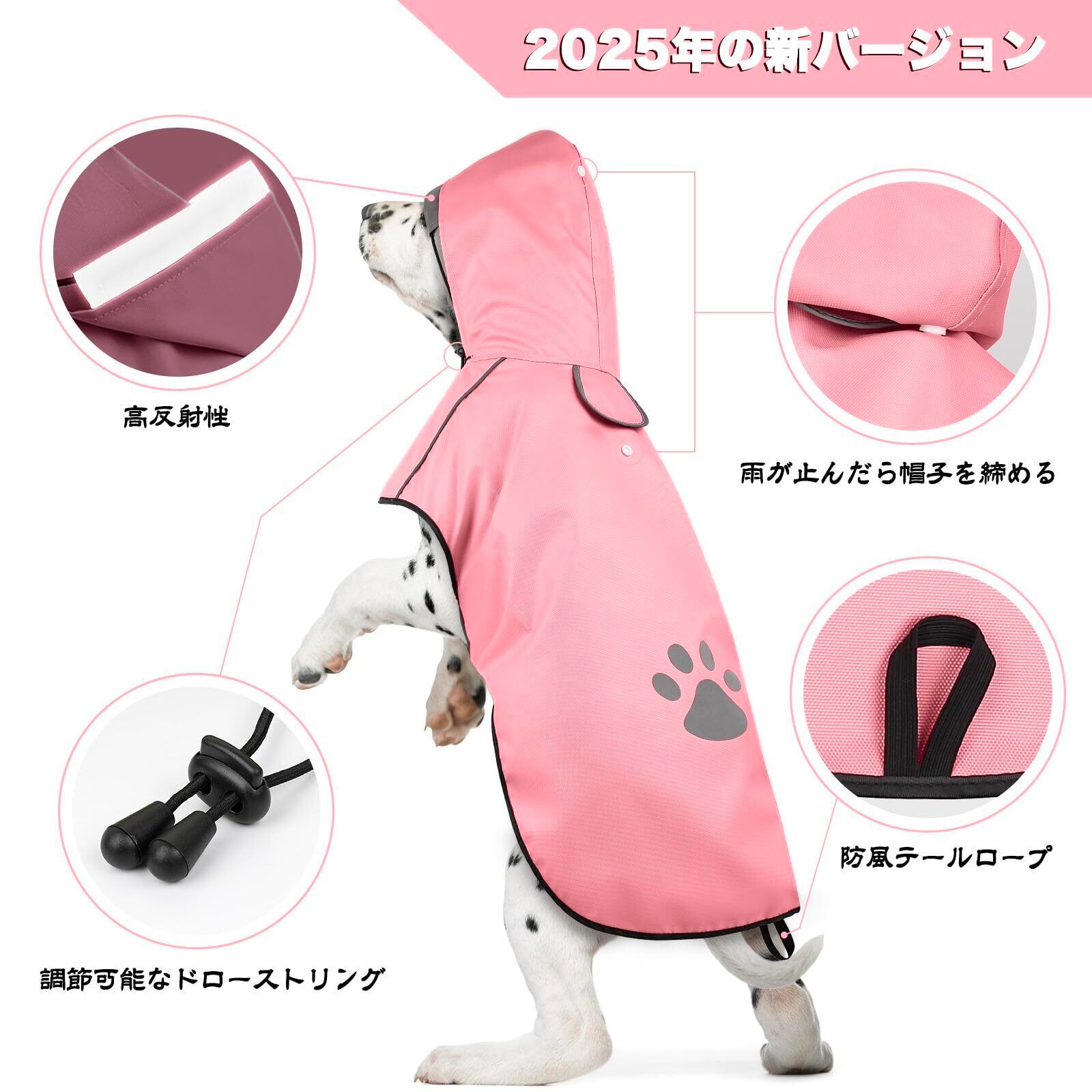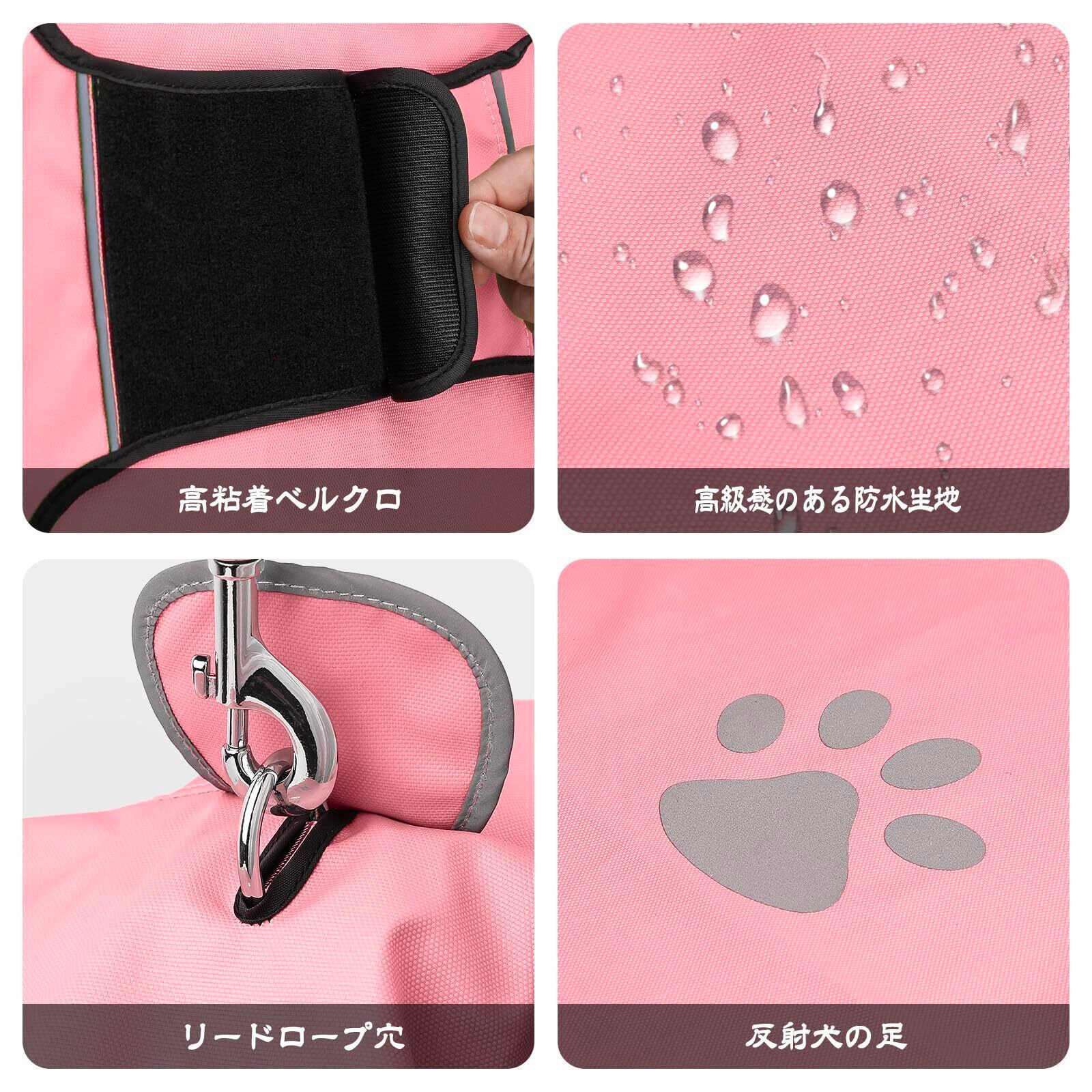 犬レインコート 防水 防風 通気性 軽量 透明フード付き 着脱簡単 マジックテープ調節可能 大型犬 梅雨対策 撥水加工 おしゃれデザイン 反射ステッチ 雨の日も安心 (ピンク, L)