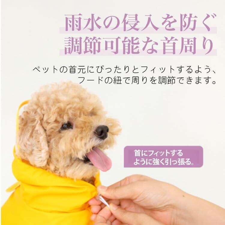 【着脱簡単&排泄しやすい半開放設計】前足を通すだけでさっと着せられる簡単設計。半開放タイプなので、雨の日でもおトイレの心配なし。忙しい朝や突然の雨にもサッと対応でき、飼い主にもペットにも優しい一着。