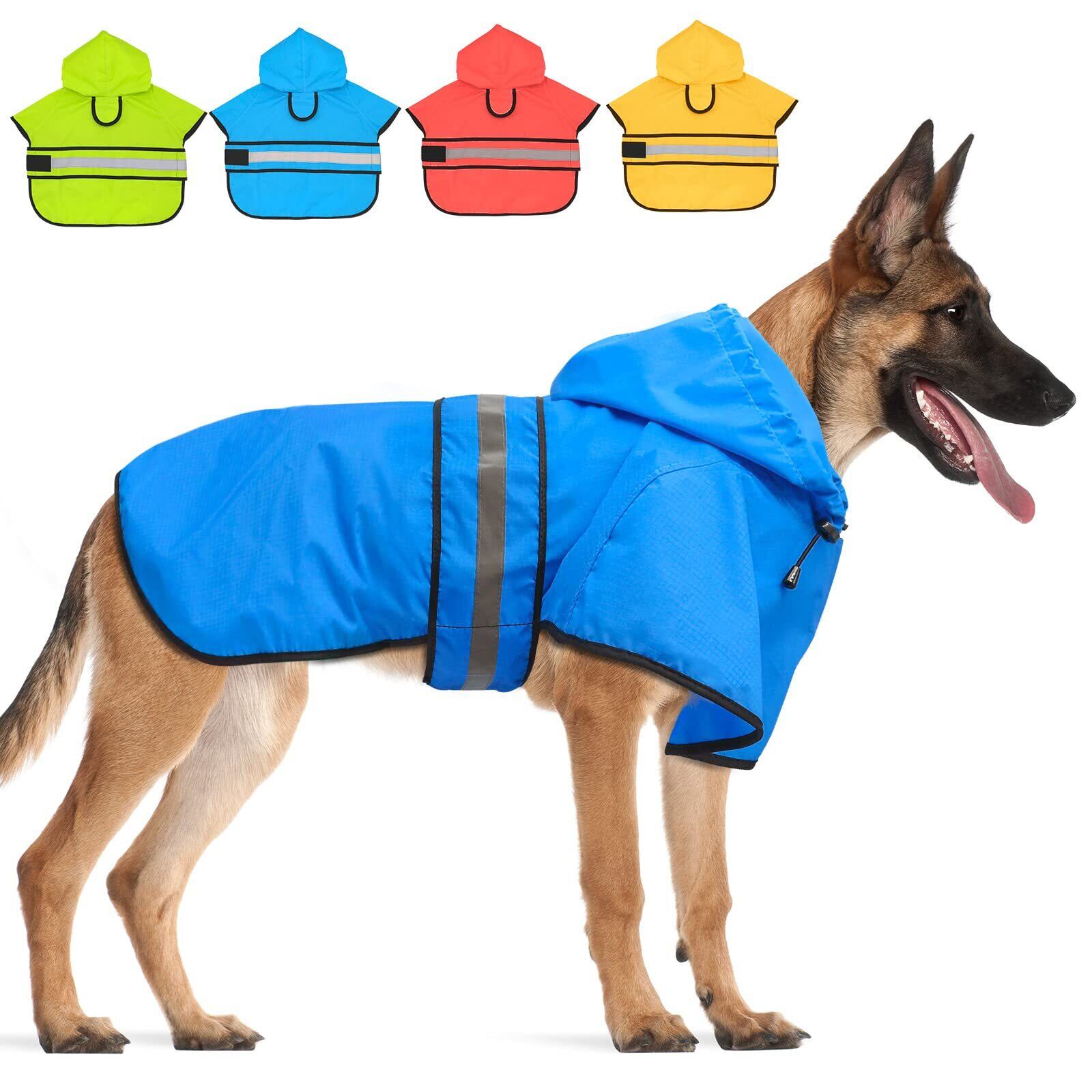 Candofly 犬用レインコート フード付き - 調節可能な反射犬用レインジャケット 軽量犬用レインコート ペットスリッカー フード付きポンチョ小型・中型・大型犬用 (2XL, 青)