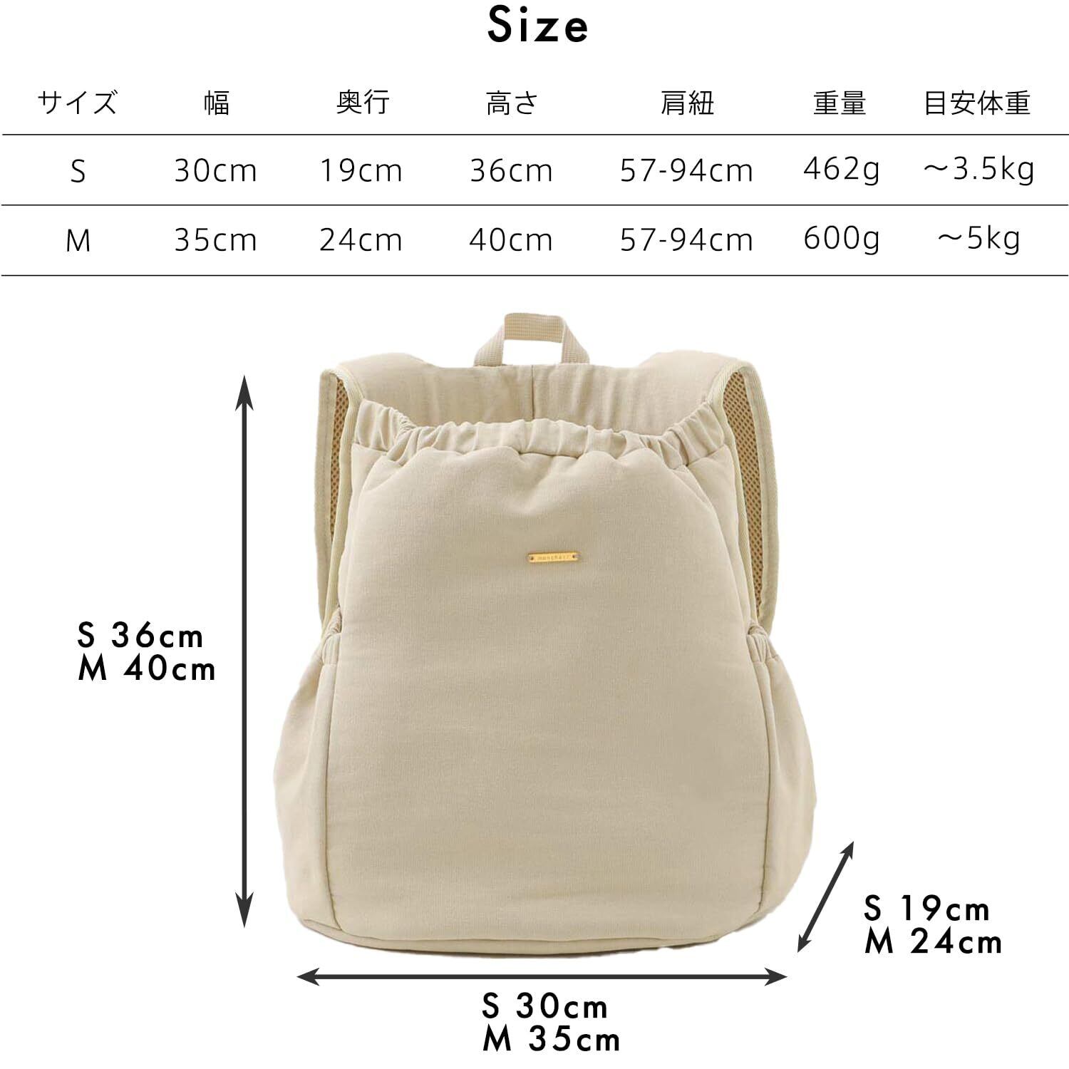 monchéri モンシェリ [ペット巾着メッシュギャザーリュック] 犬 ペットキャリー 小型犬 中型犬 (S/ベージュ) 飛び出し防止 軽量 ペットリュック お出かけ 旅行
