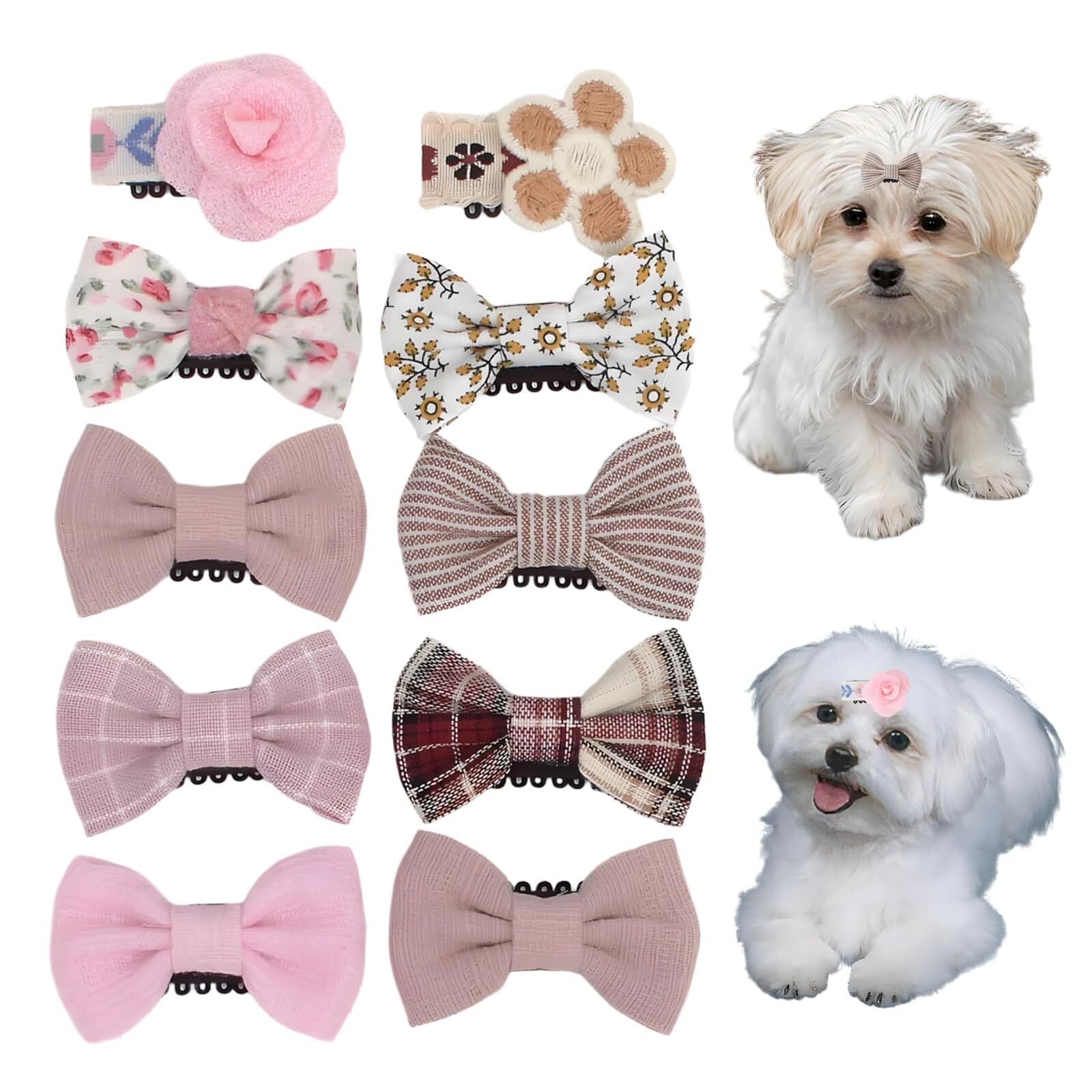 【豊富なデザイン】10種類の異なるスタイルのヘアクリップセット。ペットの様々なファッションスタイルに合わせてお選びいただけます。