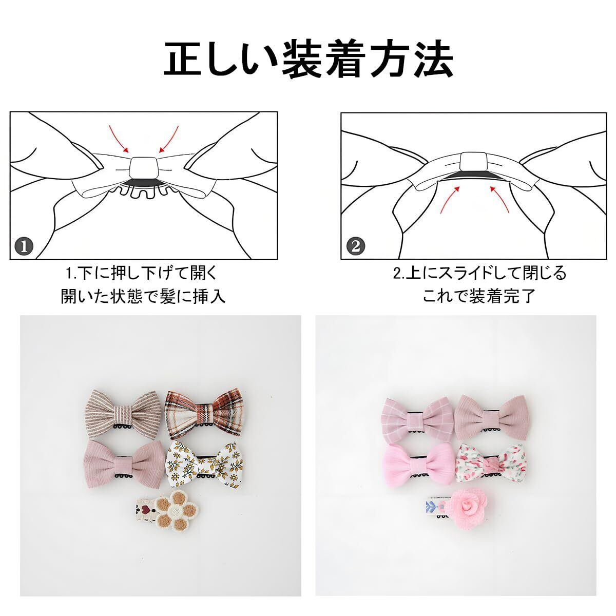 【手軽なスタイリング】前もってリボンなどで結ぶ必要がなく、そのまま毛にクリップするだけでおしゃれな仕上がりに。記念写真にも最適です。