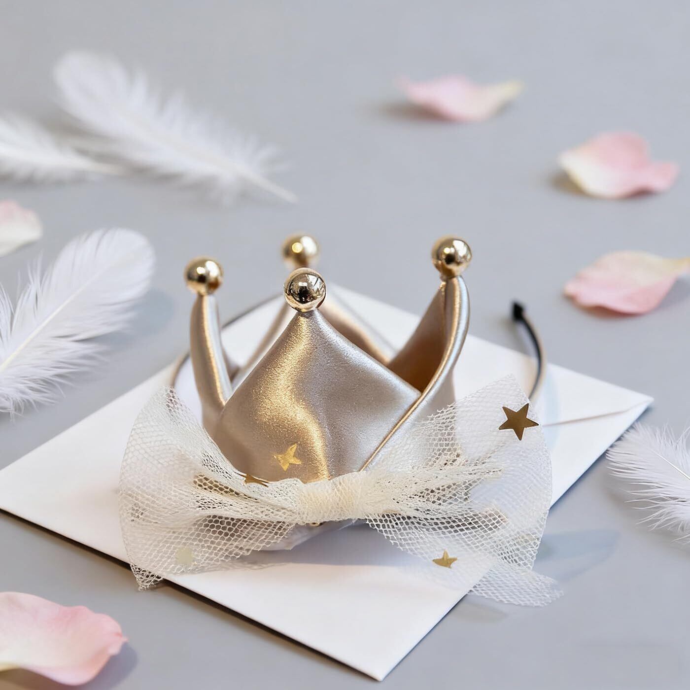 BRIIKPP ペット用ミニバースデイクラウン 犬猫兼用 調整可能 ゴールド 誕生日パーティー 写真撮影に最適