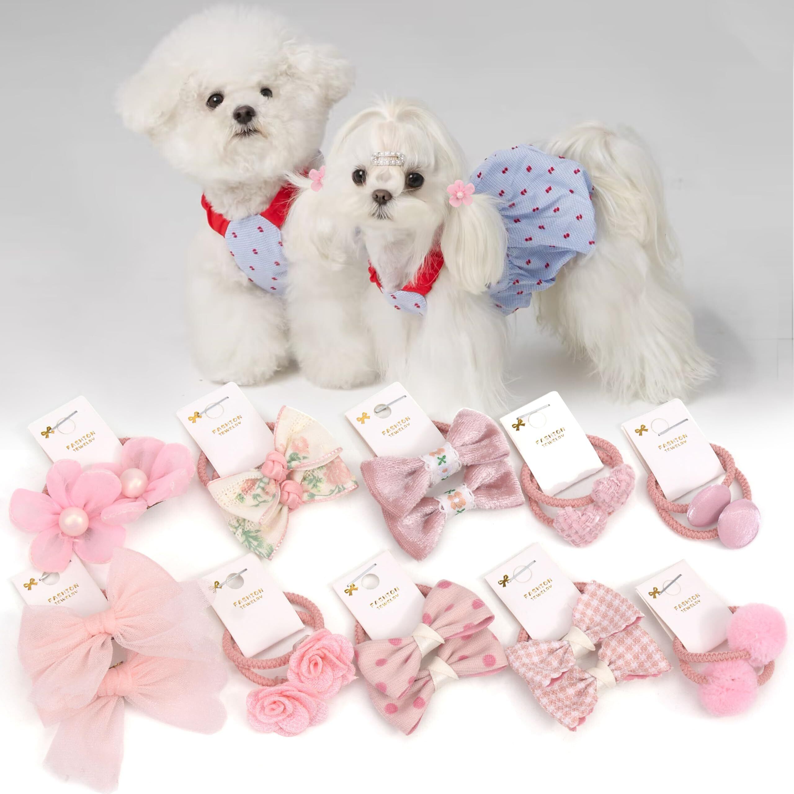 BIANHUAN 犬 ヘアゴム リボン 耳 アクセサリー 髪飾り ヘアアクセサリー 犬用リボン ゴム 可愛い おしゃれ 蝶結び お花 20点セット カラフル 猫 犬用 小動物用 ペット (ピンク)