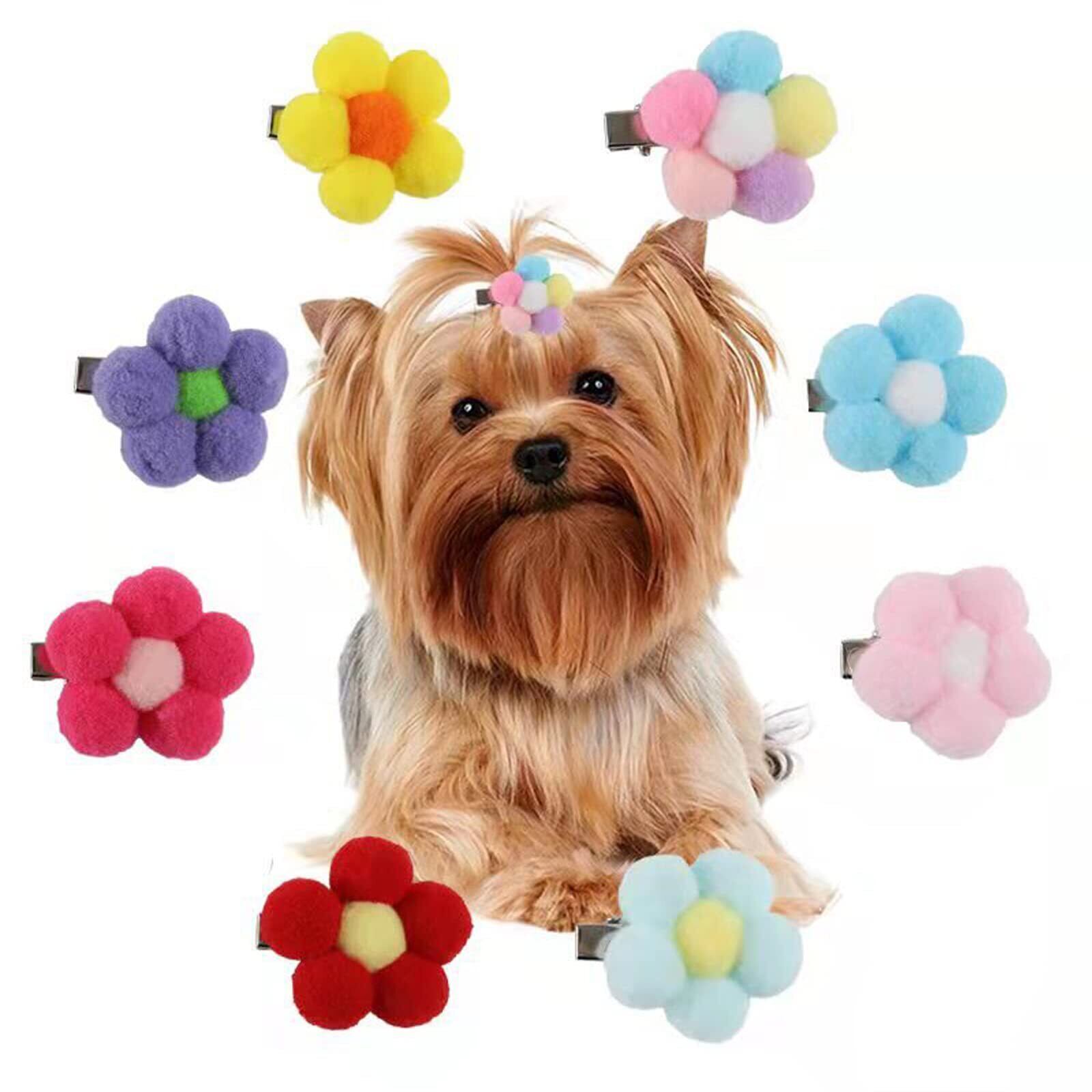 Hitasi ペットヘアピン 犬 猫用髪飾り ペット用ヘアクリップ 8枚セット ヘアボールヘアピン ペット用 前髪クリップ 可愛い 花 着脱簡単 雰囲気 飾るクリスマス 誕生日 贈り物 犬用ヘアアクセサリー
