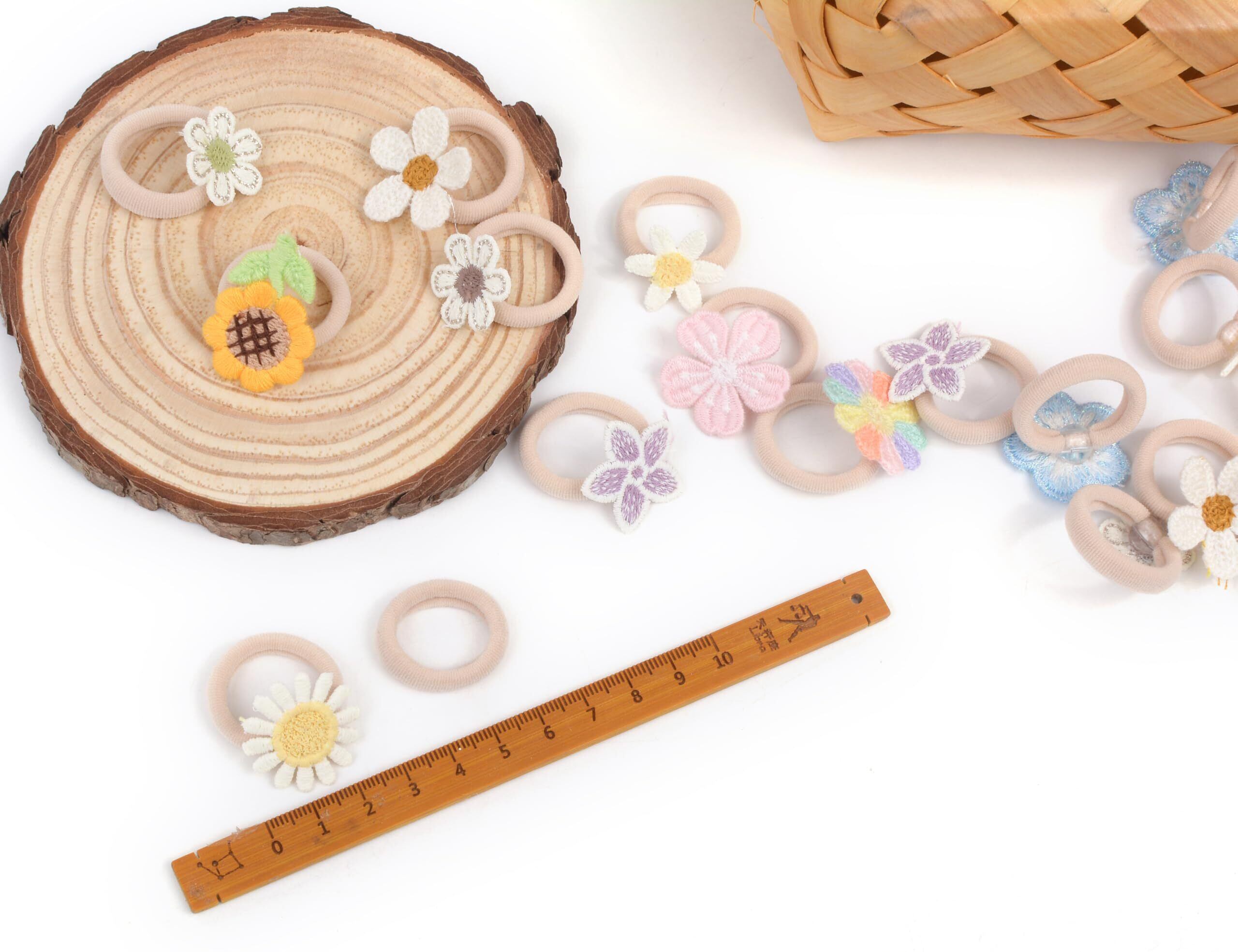 【セット内容】:20本 ・【サイズ】:ヘアゴム直径約2.5 cm ・【素材】ゴム、ポリエステル/パーツ、樹脂