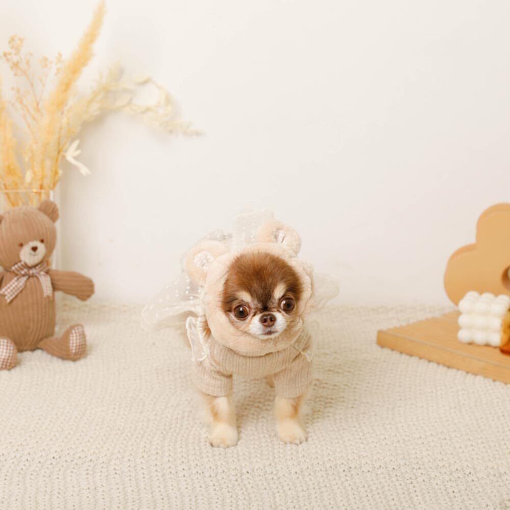 monchéri モンシェリ [くまさんヘアバンド] 犬 服 ドッグウェア 小型犬 かわいい おしゃれ お出かけ 旅行 人気 ブランド トイプードル チワワ (IVORY, M)