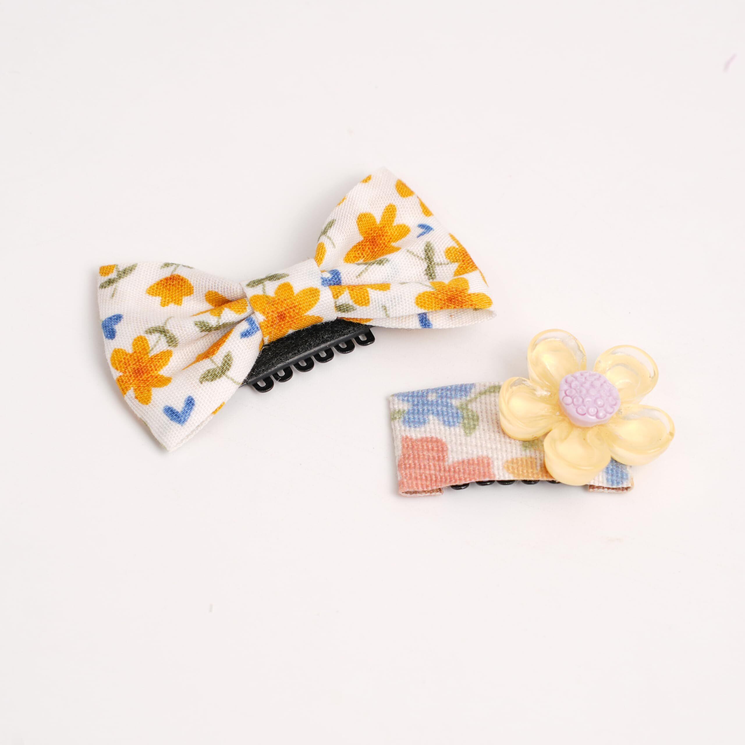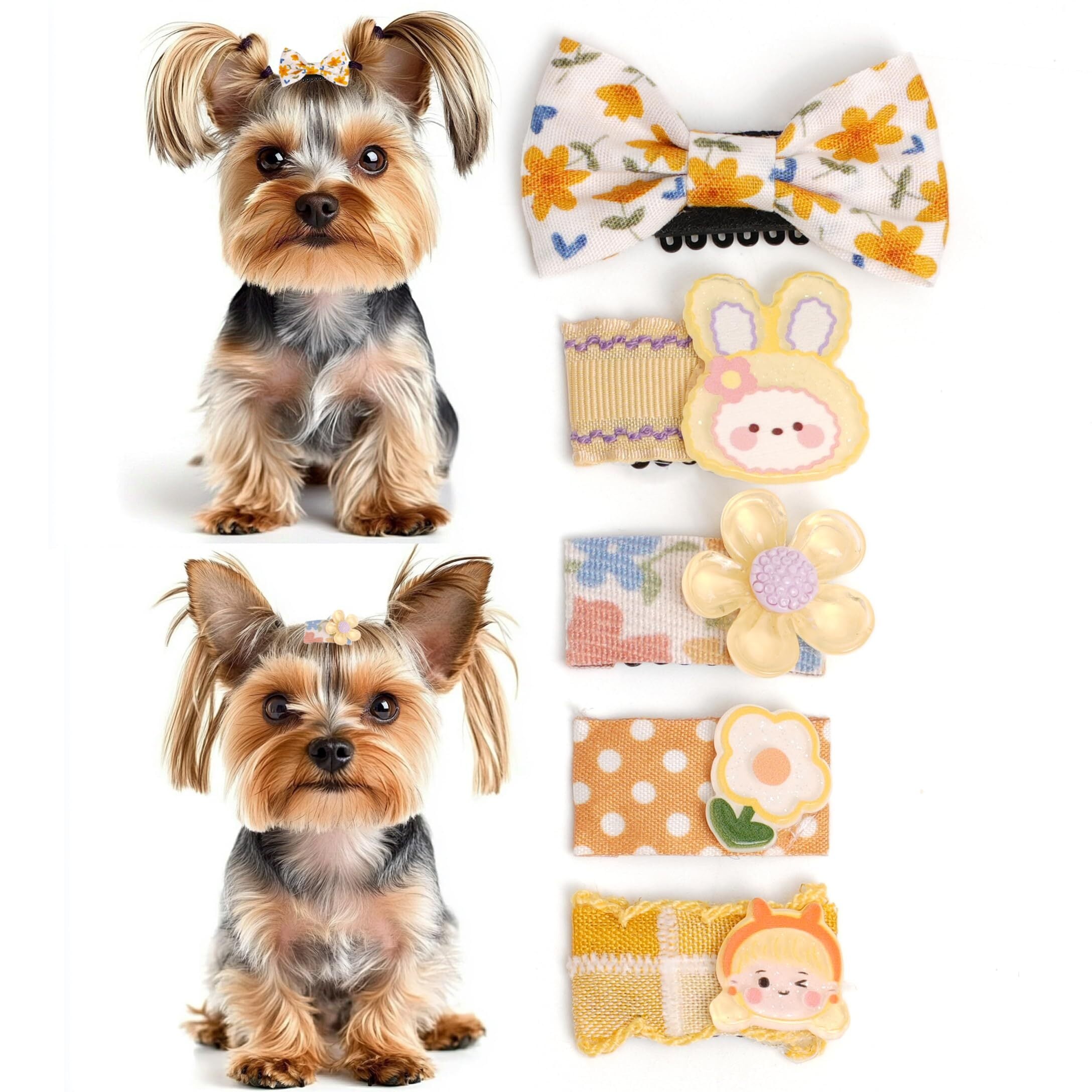 BIANHUAN 犬 ペット用 ヘアクリップ ヘアピン リボン 猫犬用 5点セット コームピン パッチン留め 髪飾り 髪留め 髪束ね 上品 超可愛い 赤ちゃん 子供 ペット ベビー ヘアアクセサリー かわいい おしゃれ (キイロ)