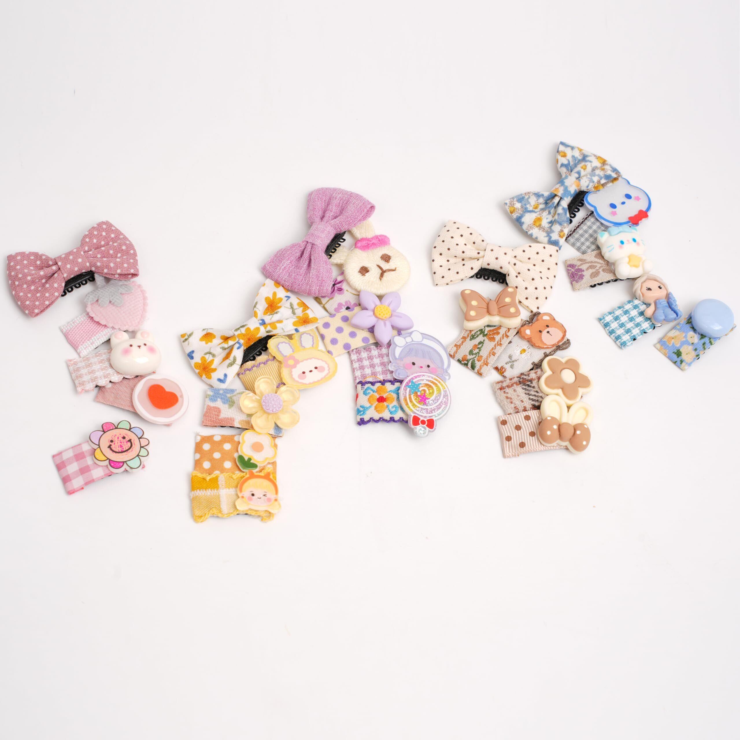 【セット内容】:5個セット ・【サイズ】:リボン約4.5cm×3cm コームピン約2.8×1.3cm・【素材】ポリエステル/パーツ、樹脂