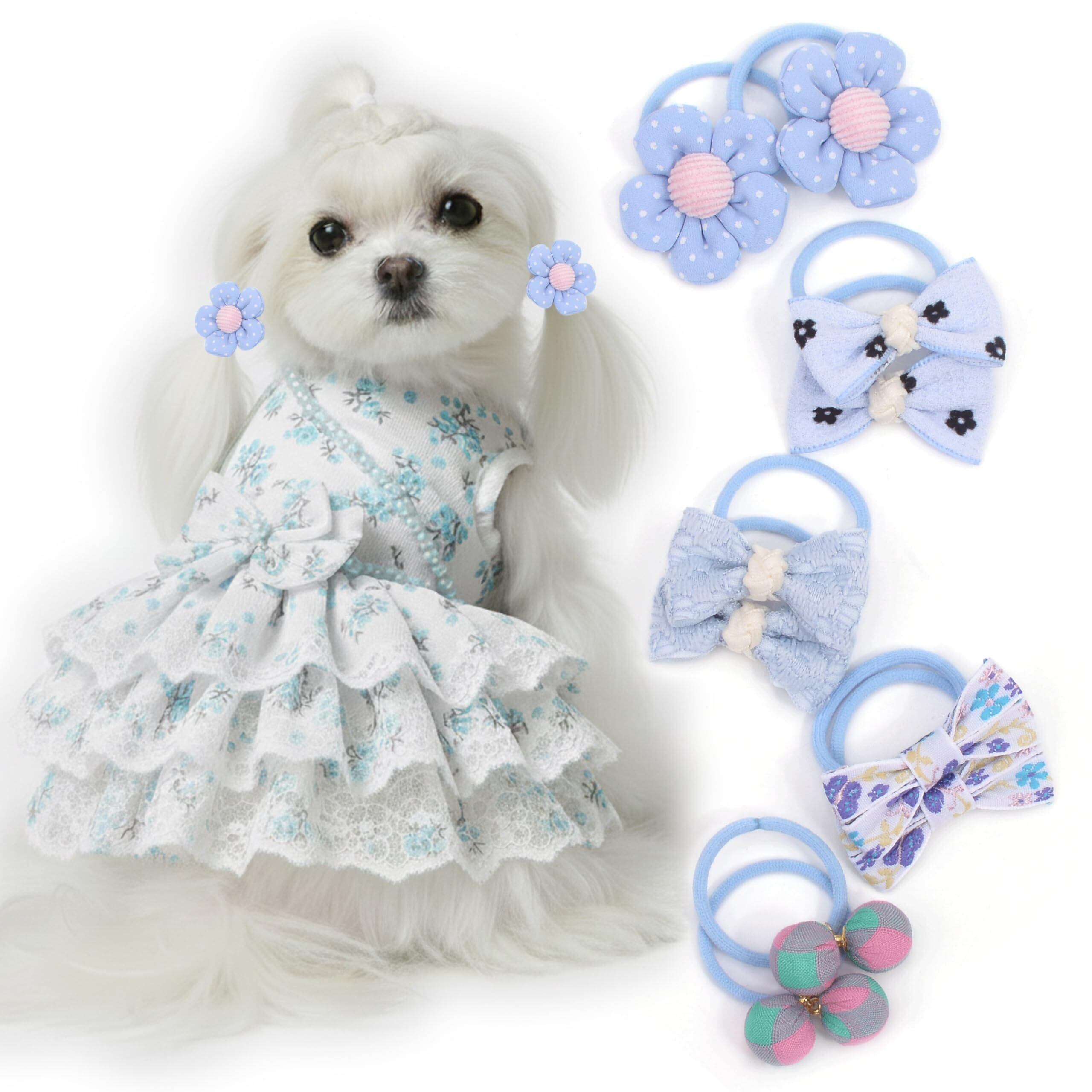 BIANHUAN 犬 ヘアゴム リボン ゴム 10個セット ヘアアクセサリー お出掛け ペット 可愛い 猫用 ヨークシャーテリア シーズー ポメラニアン ミニチュアシュナウザーマルタ ヘアボウ 犬のヘアアクセサリー ペット用 髪飾り 髪留め(ブルー)