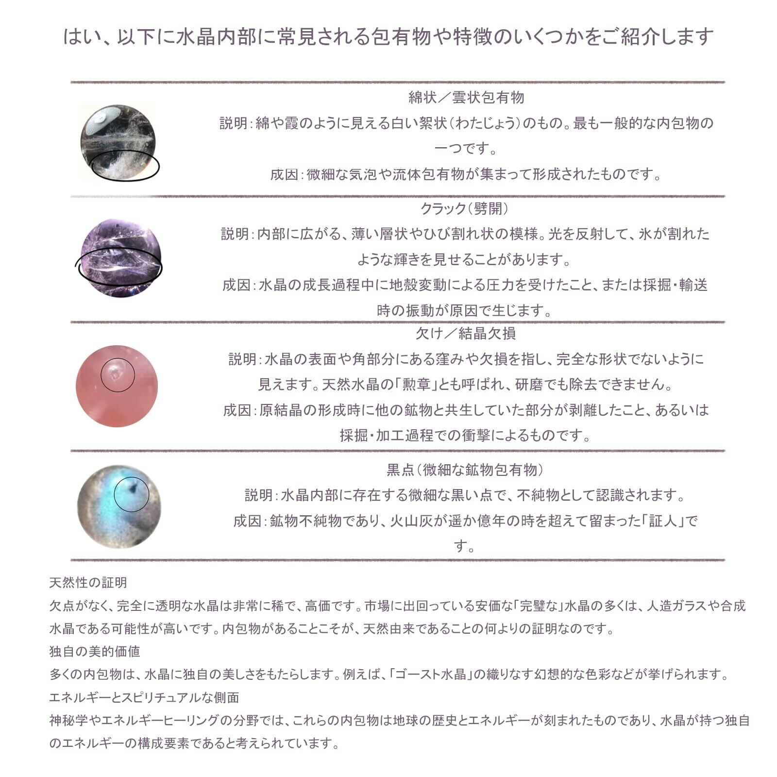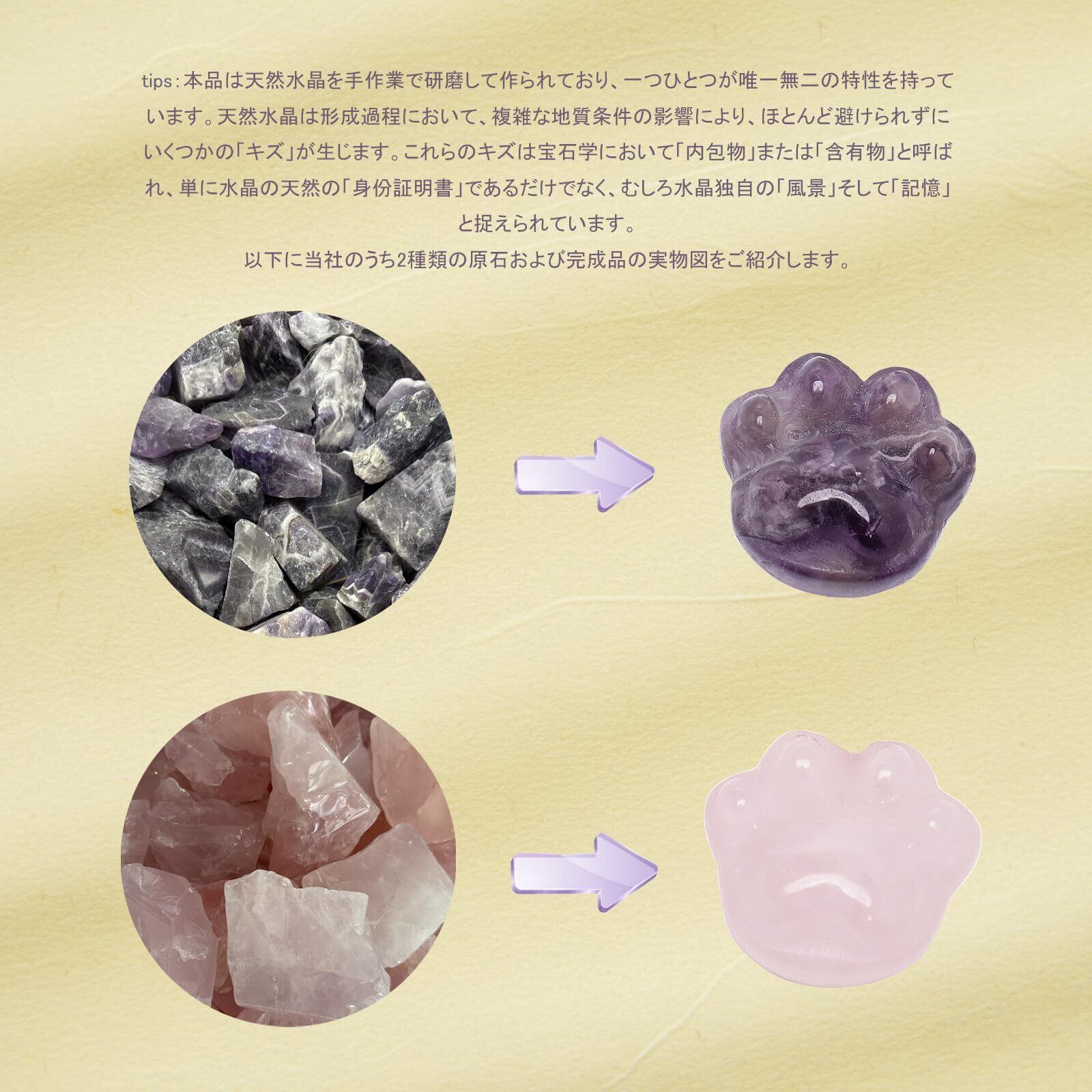 pet crystals 自然が生み出した天然石を使用しているため、それぞれに個性的な風合いがあります。画像と実物で色合いや内包物が多少異なる場合がございますが、それは天然石ならではの魅力です。ご不明点がございましたら、お気軽にご連絡ください。