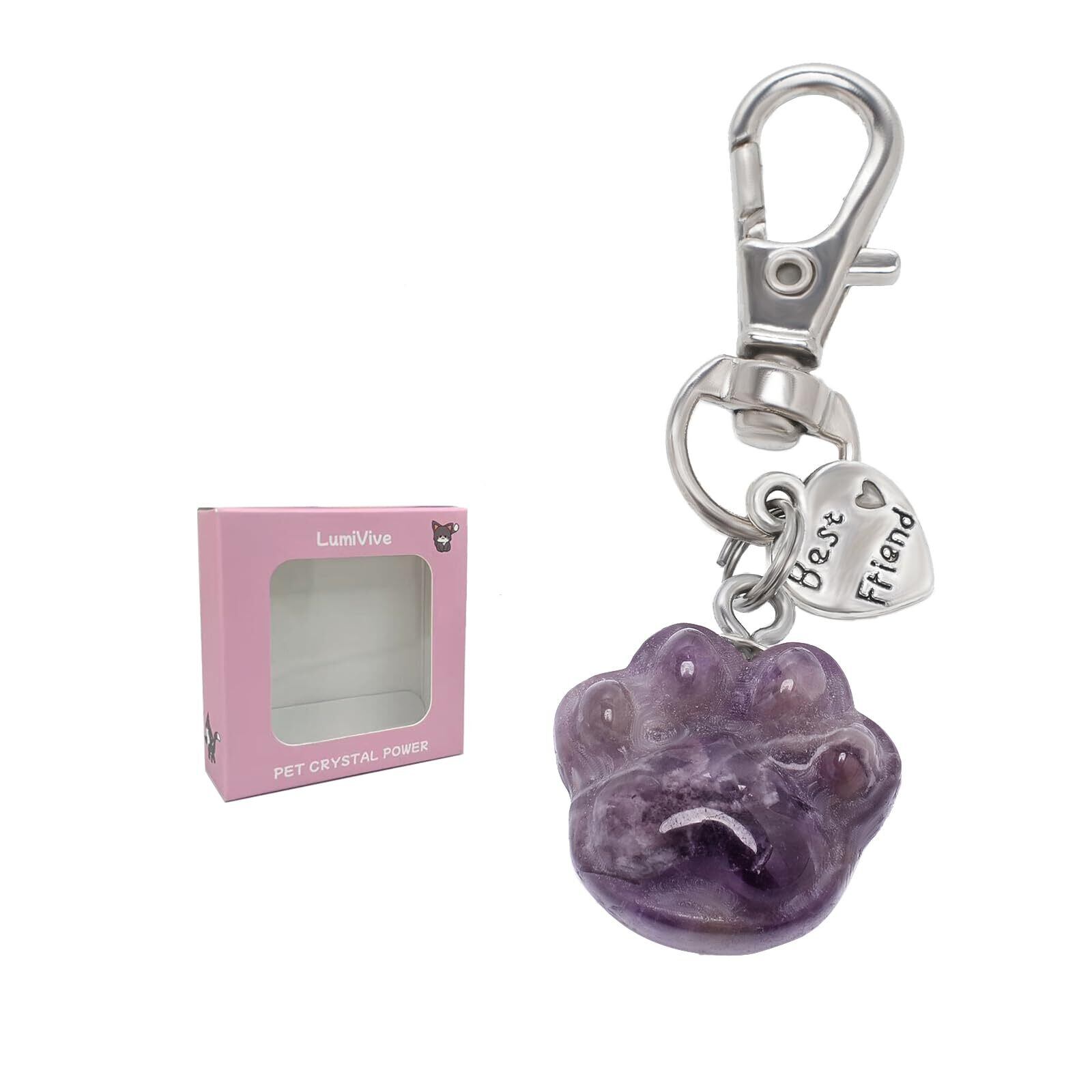 [LumiVive] 猫 首輪用ペンダント - 天然石パワーストーン|可愛い 猫の肉球型お守り・浄化ヒーリング・癒し・ペット水晶アクセサリー