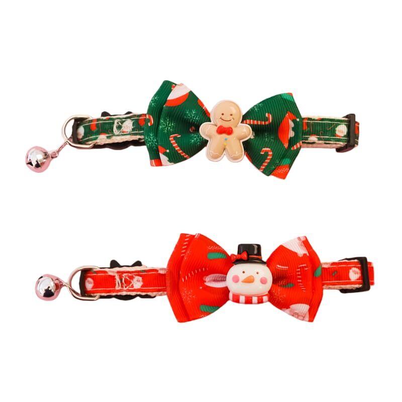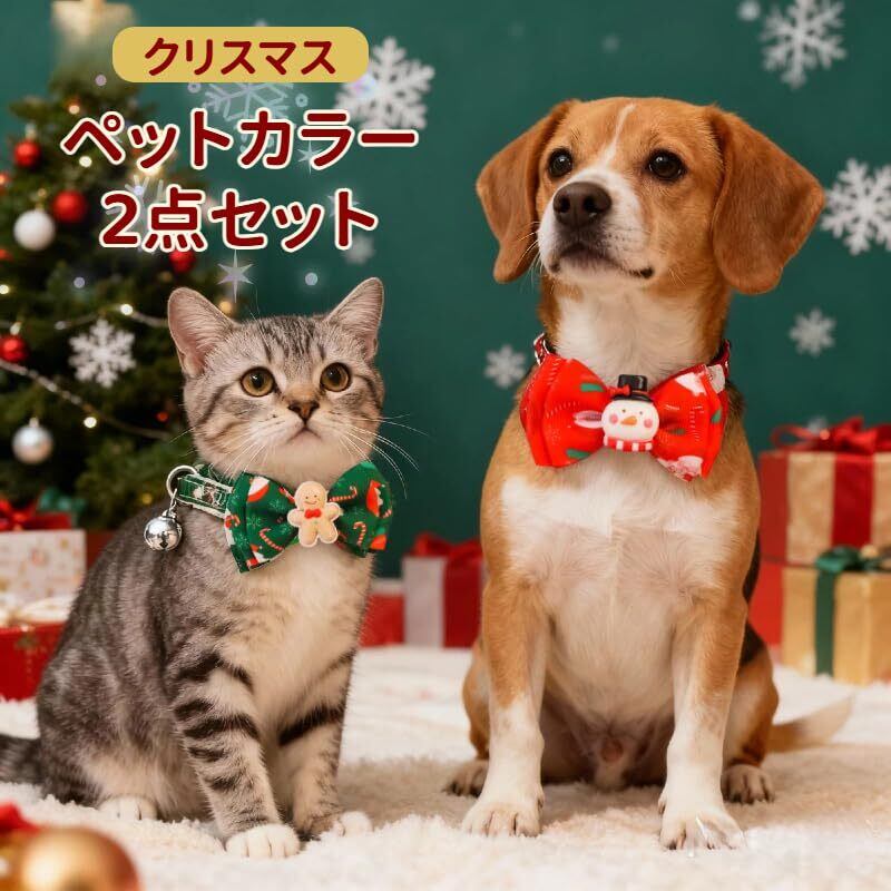 【2025年のNEWスタイル】犬 猫用 首輪 クリスマス 2個セット 可愛いペット用 鈴付き ペット ネックレス 飾り 調節可能 着脱簡単 わんちゃん ねこちゃん アクセサリー パーティー コスプレキャップ リボン結び 小物 変身 装飾品(雪だるま+クッキー)