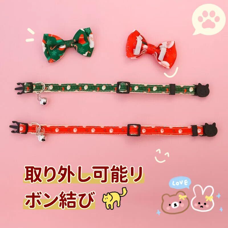 【クリスマスの定番アイテム】サンタクロースとクリスマスツリーモチーフの首輪で、クリスマスパーティーがさらに盛り上がること間違いなし! 愛犬・愛猫が一層可愛らしく変身し、イベントの雰囲気を最高に引き立てます。普段使いにも最適で、リボン付きデザインでお散歩時も注目の的に!