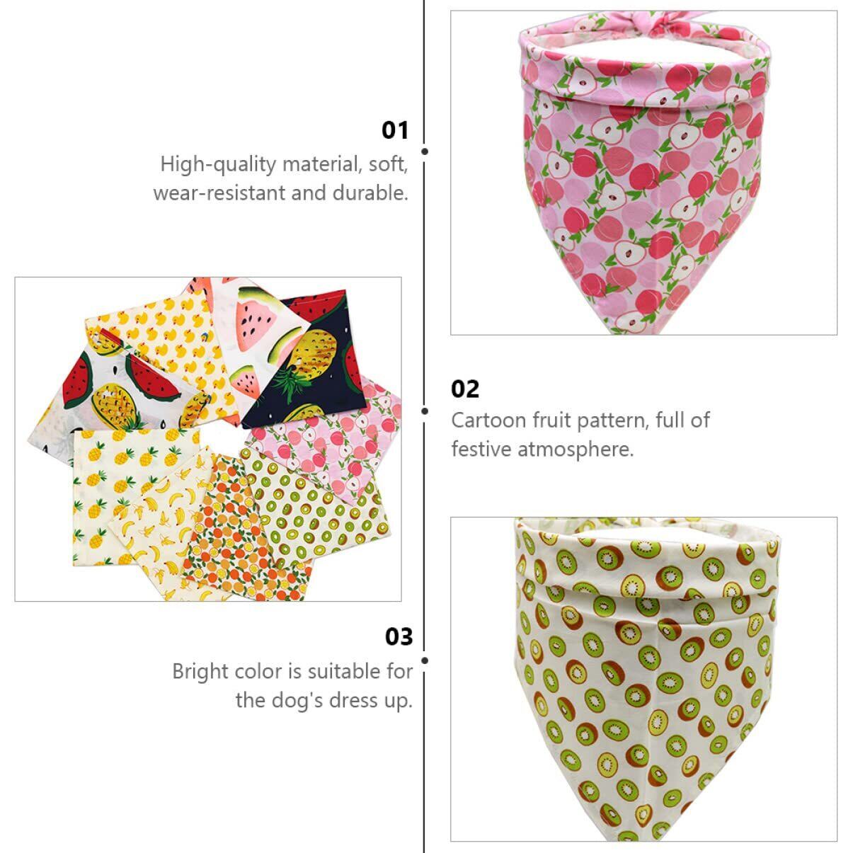 猫バンダナよだれかけ:漫画とさわやかなフルーツパターンのデザインで、お祭りの雰囲気を加え、ペットを魅力的にします。