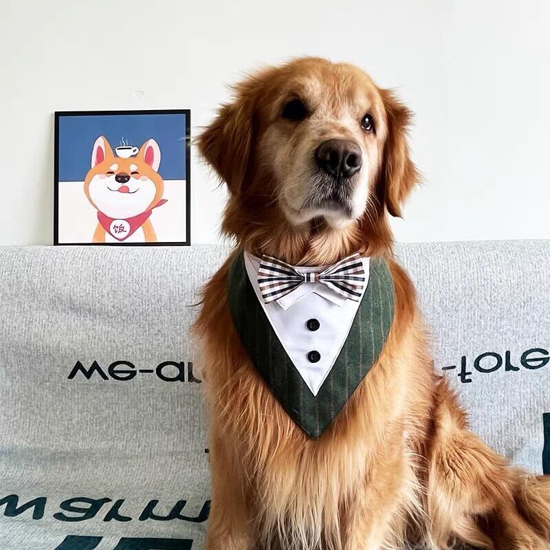 MEIAOJIA 犬 ネクタイ しま模様 襟 タキシード フォーマル スーツ 蝶ネクタイ バンダナ 結び 調整可能 誕生日 結婚式 パーティー 記念撮影 深緑 L