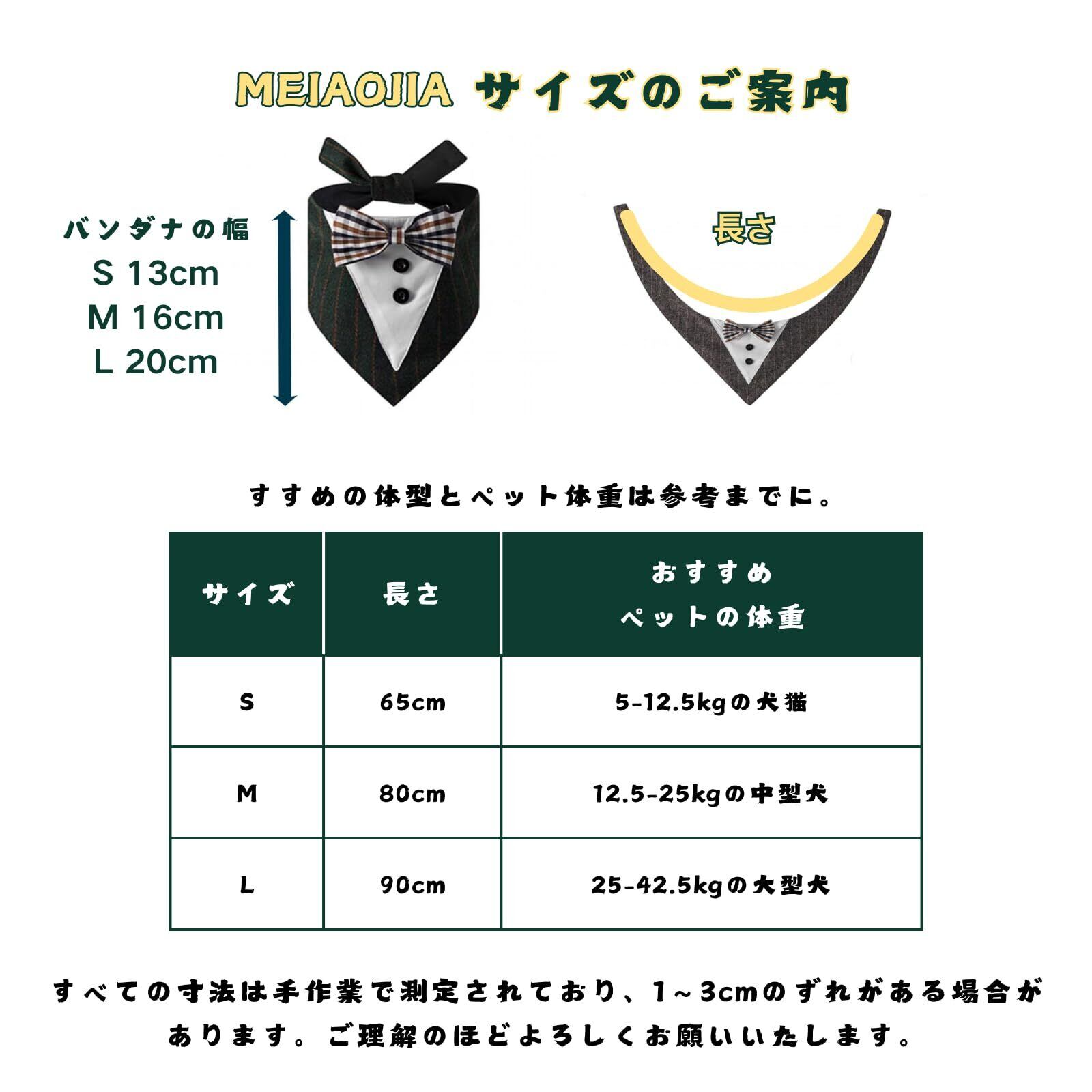 M:首周り:66cm以内;長さ:80cm;バンダナの幅:16cm。12.5-25kgの中型犬がおすすめ