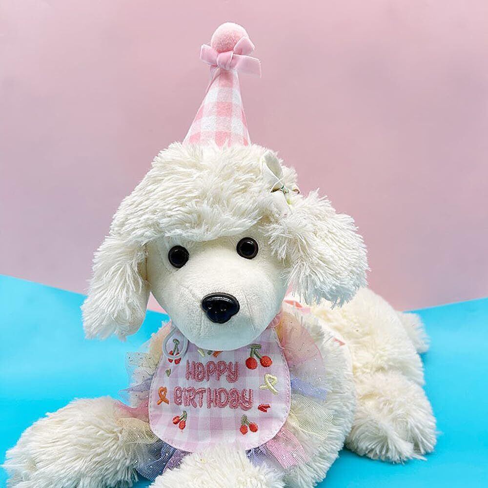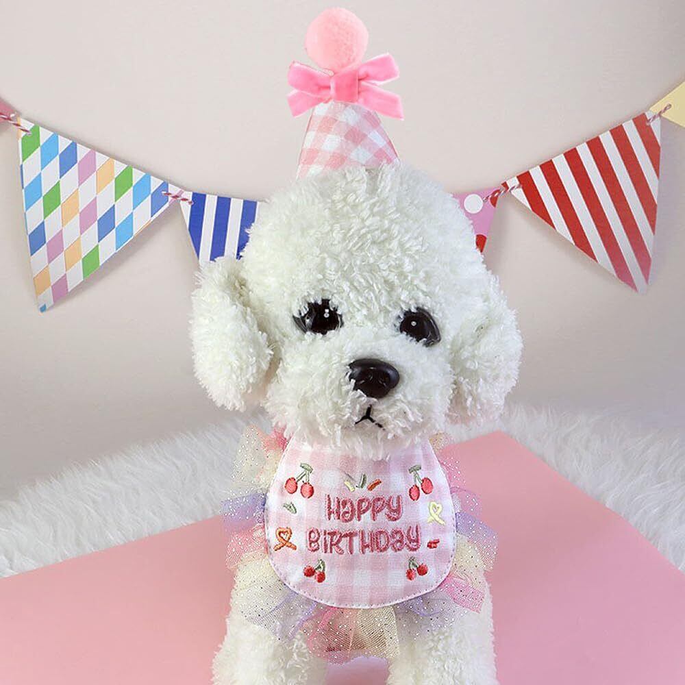 YBGGJO 誕生日帽子 犬 猫 2点セット よだれタオル HAPPY BIRTHDAY バースデー よだれかけ バンダナ 蝶ネクタイ 調節可能 柔らか 飾り付け おしゃれ 撮影 写真 誕生日プレゼント パーティー飾り (ピンク)