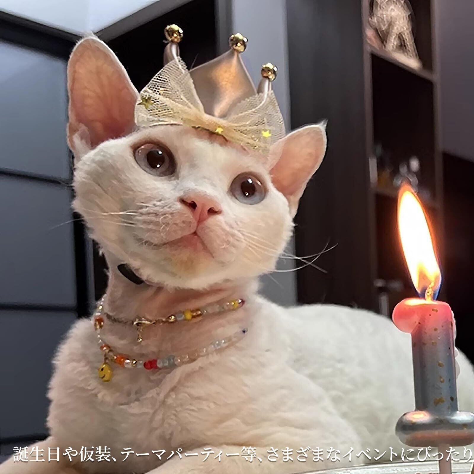 まちの波 犬 バースデーハット 飾り付け 猫用 誕生日帽子 かぶりもの ペットバースデー パーティー飾りグッズ 誕生日グッズ ミニバースデイクラウン 写真撮影 (ゴールド)