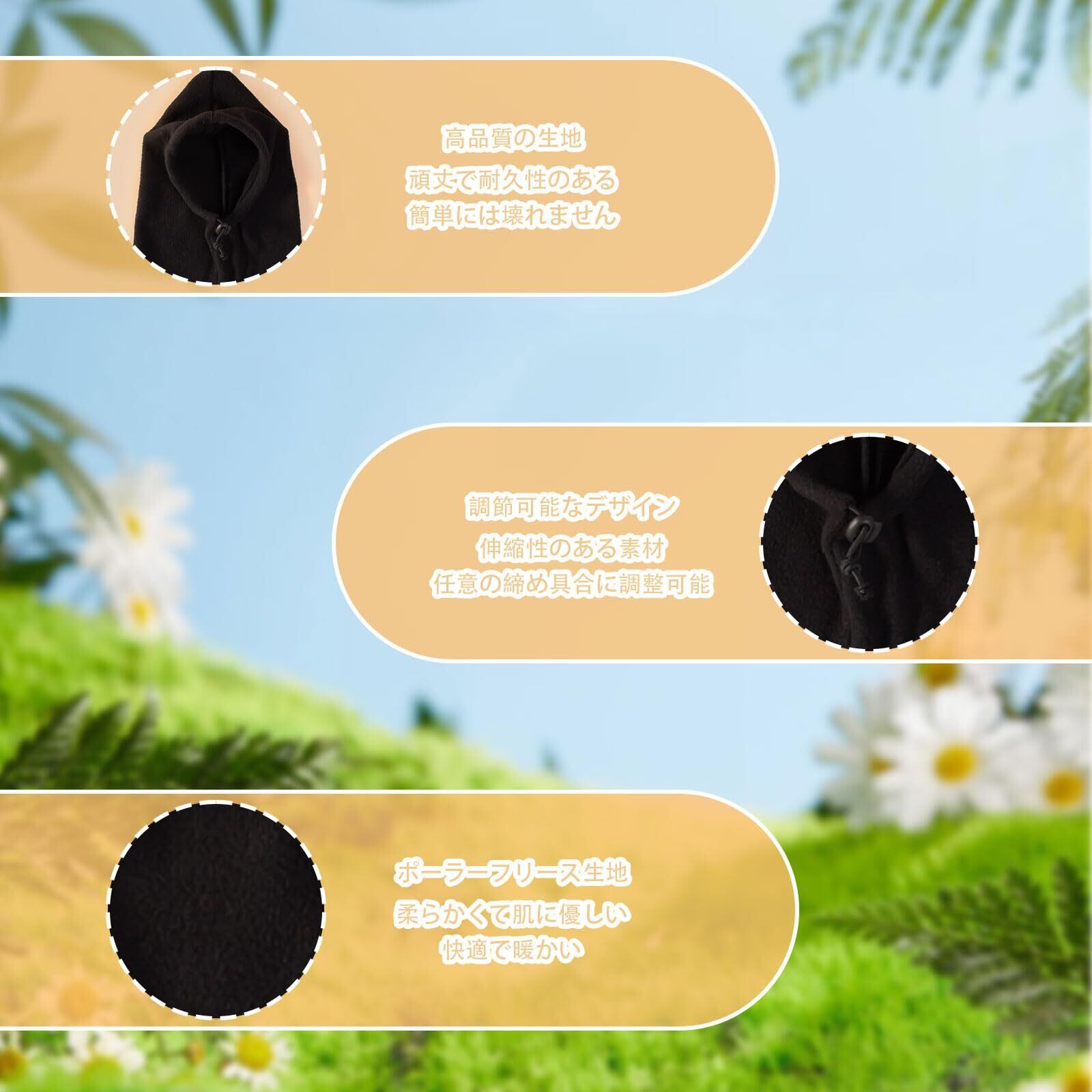 【デザイン】首、耳、頭を覆う一体型のフルラップデザインのペット用帽子です。ペットの首や頭を温め、冷たい風からペットを守ることができます。寒い季節でも愛犬は快適に過ごします。