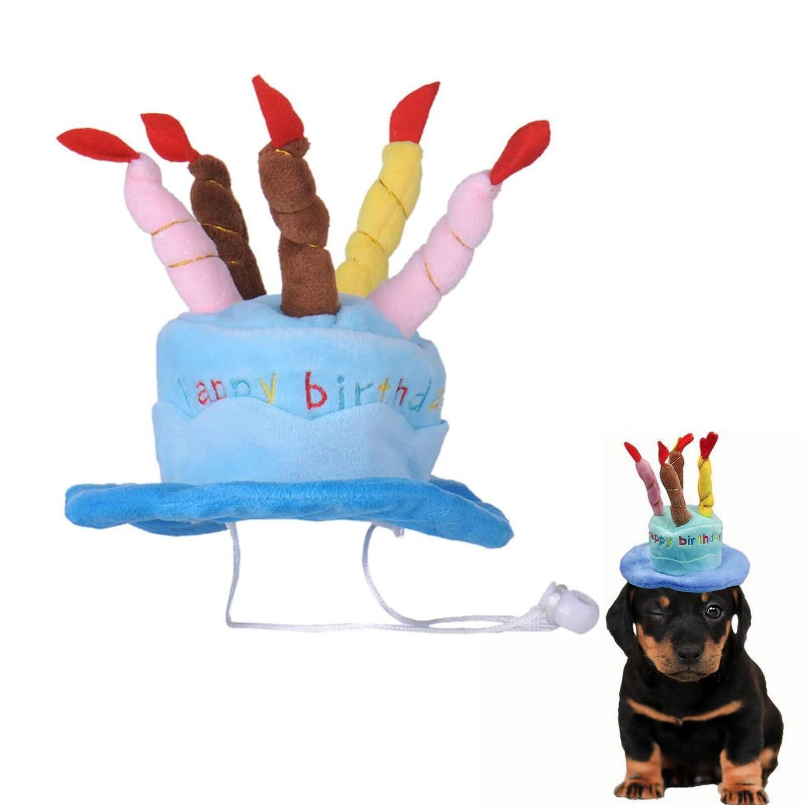 DONGFANGB ペット用バースデーハット ケーキ型帽子 小型犬 中型犬対応 犬猫兼用 写真撮影用 誕生日パーティー 記念日 プレゼントに最適(ブルー)