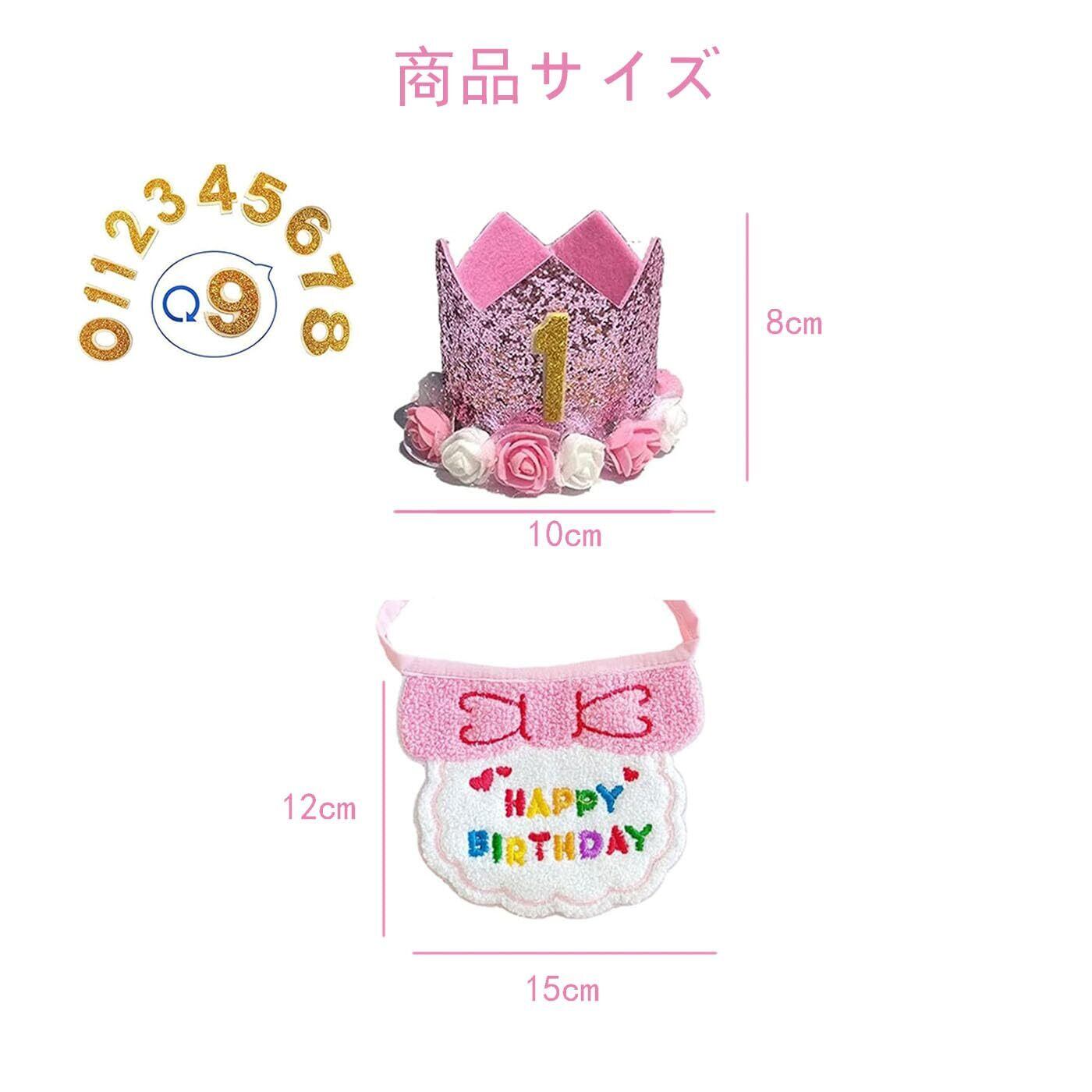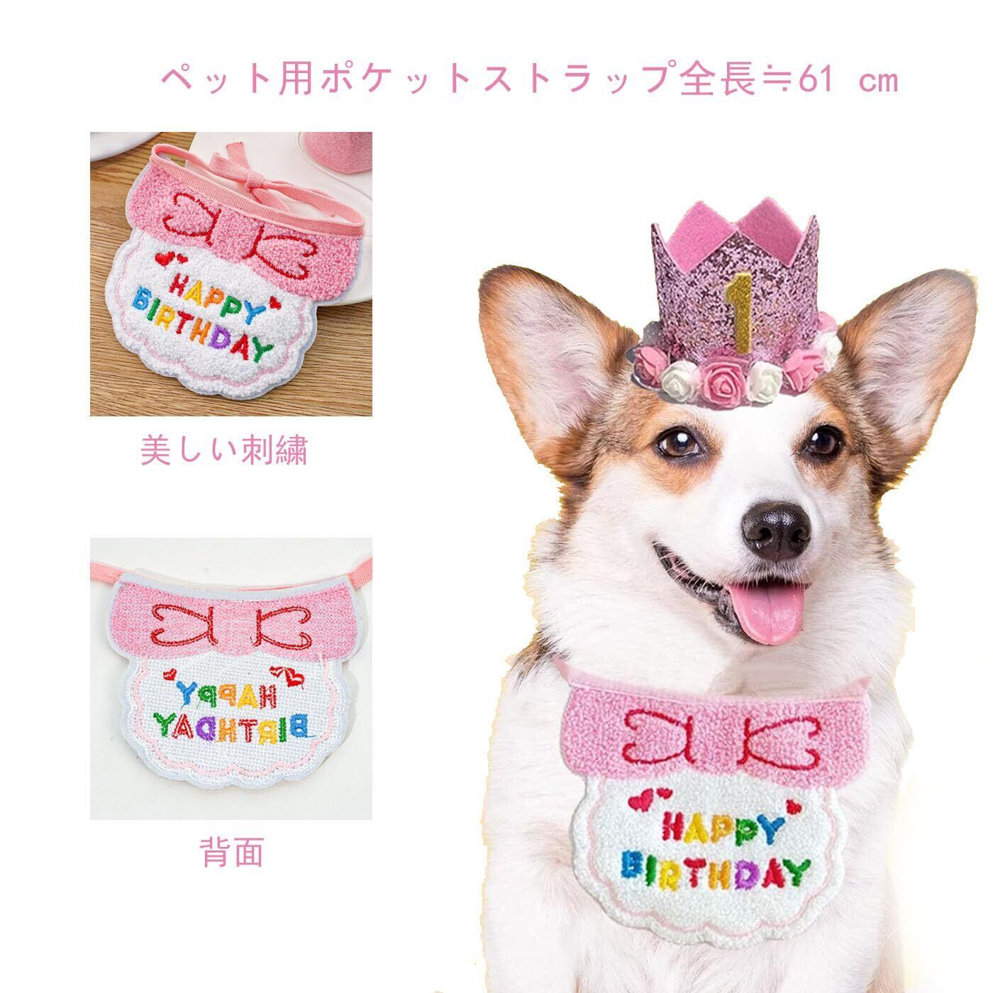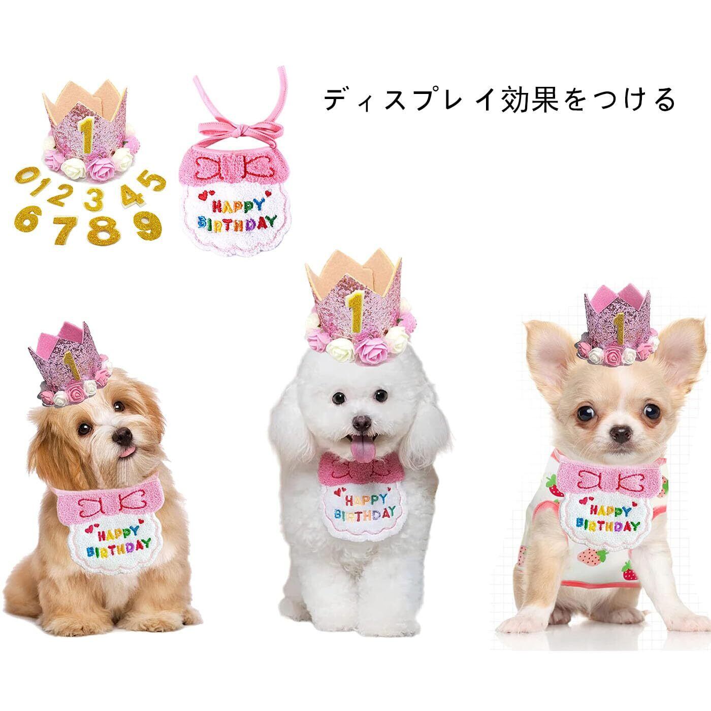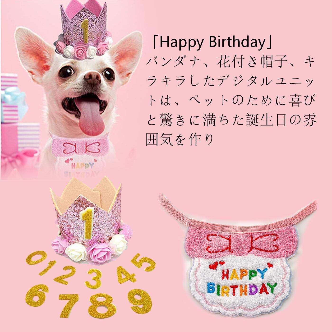 BRIIKPP 犬 猫 誕生日帽子 バンダナ よだれかけ 数字付き 2点セット 犬 猫用 ペット 誕生日 帽子 王冠 小型犬 調節可能 記念日 パーティー飾り(ピンク)