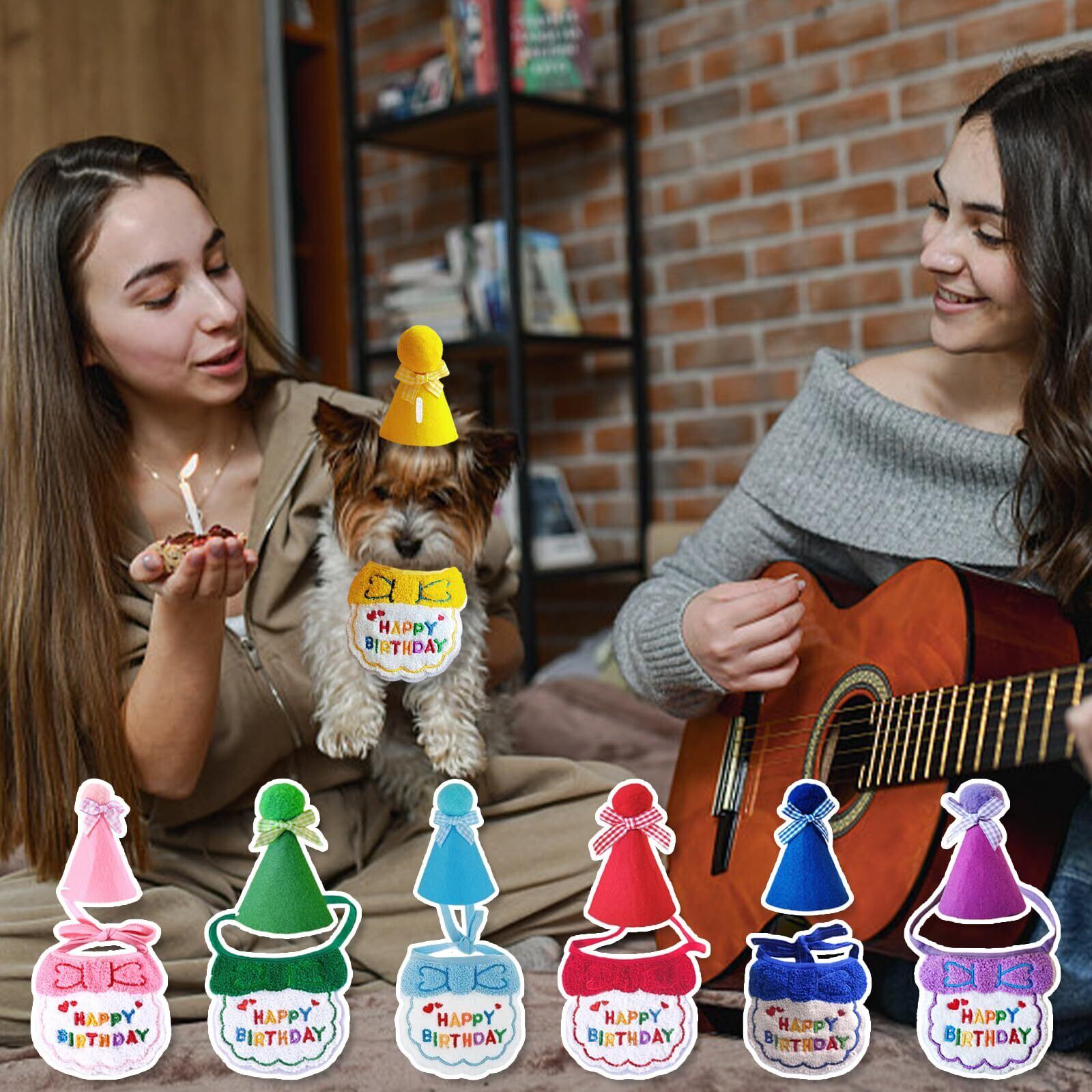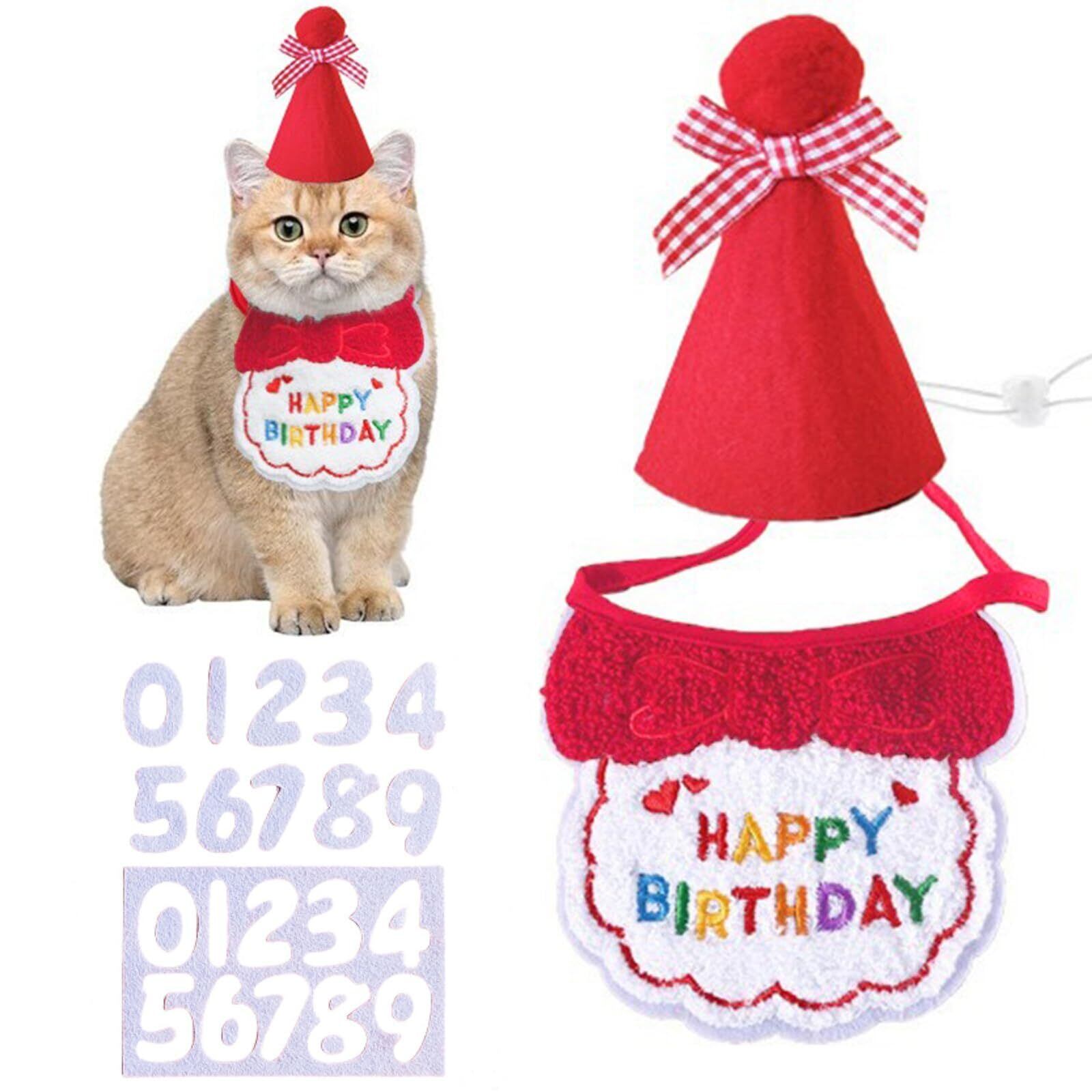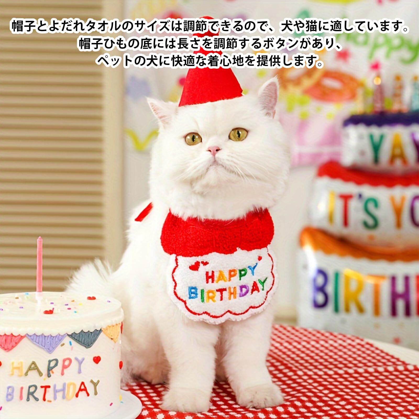 犬 誕生日帽子 バンダナ よだれかけ 2個セット happy birthday 唾液タオル 飾り付け ペット用品 可愛い 猫用 飾り 柔らかく お散歩 食事用 取り付け簡単 おしゃれ 犬 誕生日グッズ 小型犬 (A-レッド)