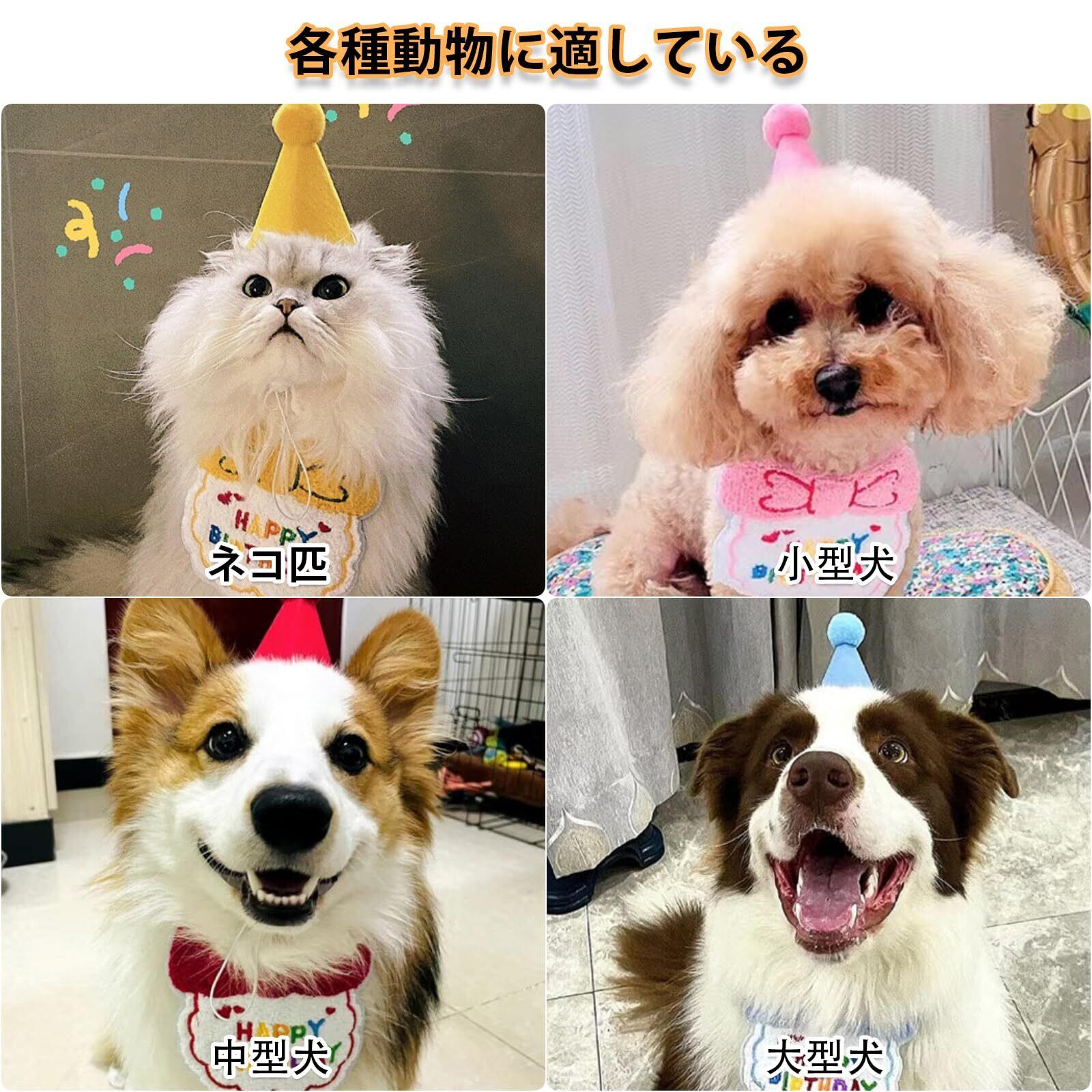 【ペット用】新しいペット用帽子とよだれタオルはペットに異なる快適さを感じさせますが、あなたとペットはもっと気持ちがいいです。 【サイズ】よだれかけは14CM*11CM 、帽子は6CM×9 CM、バンダナのロープも長さが調節できます。 【素材】柔らかく肌触りの良い素材。ペットには無害で、赤ちゃんにも向いています。肌に優しく快適で、ペットは大好きです。犬猫に優しい。耐久性にも優れています。水で洗って、繰り返し利用することができます。 【場合】可愛くて人気のある柄のペットバンダナです。パーティーの衣装、ハロウィーンの衣装、クリスマスプレゼント、ホリデーギフト、写真撮影、または日常着に最適です。 【パッケージ】誕生日帽子*1、よだれかけ*1