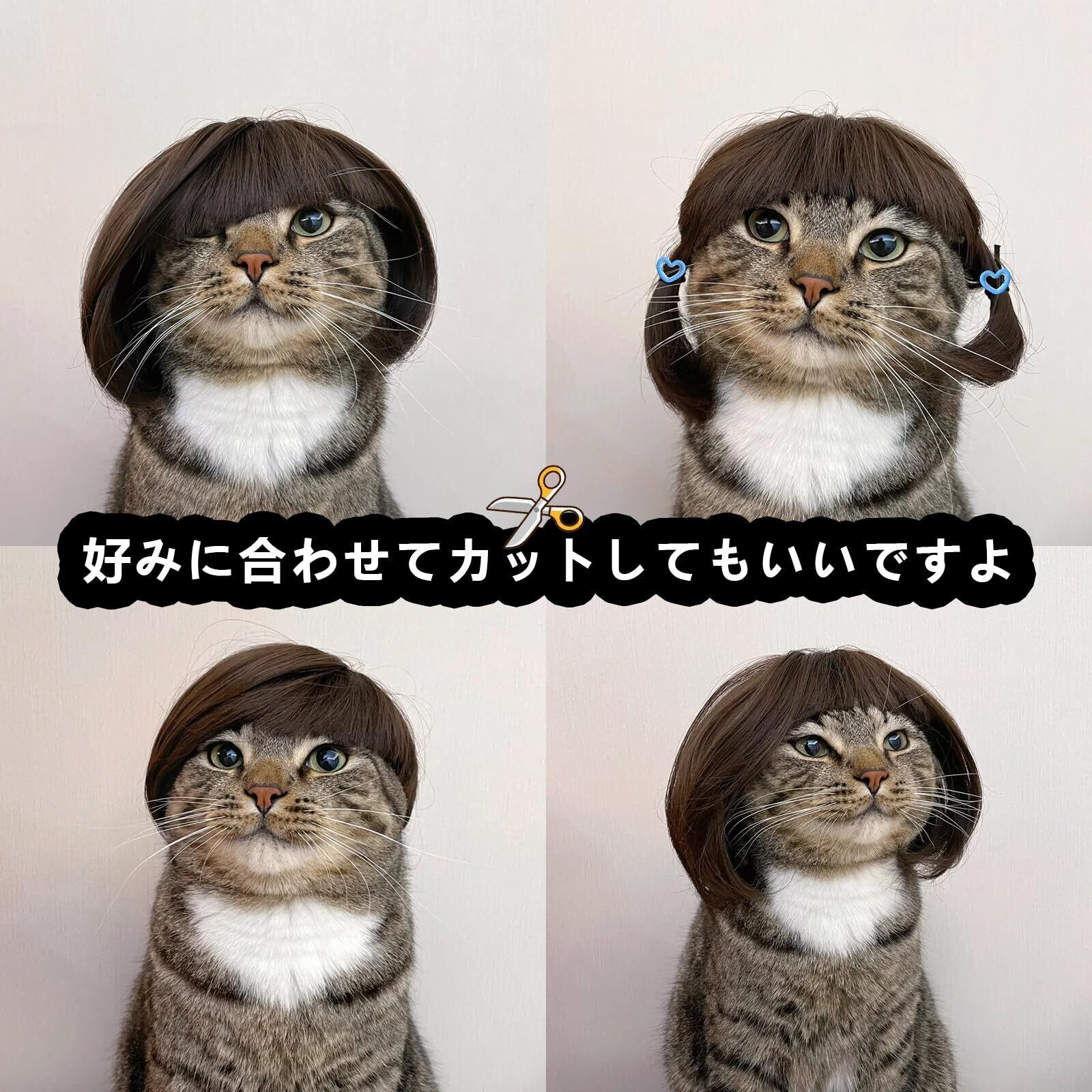 【Charming Club】犬 猫 ハロウィン コスプレ かつら ペットウィッグ帽子 コスチューム レディース髪 子犬 子猫 小型犬 大型犬被り物 面白い 目に立つ 笑える ワンちゃん 変身 YouTube Tik Tok 撮影道具 (A-自然)