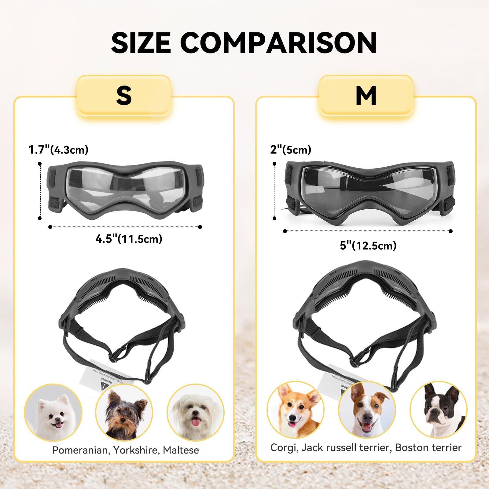 PETLESO犬ゴーグル 小型犬サングラス防風UVカットゴーグル保護犬用ゴーグル、S黒い