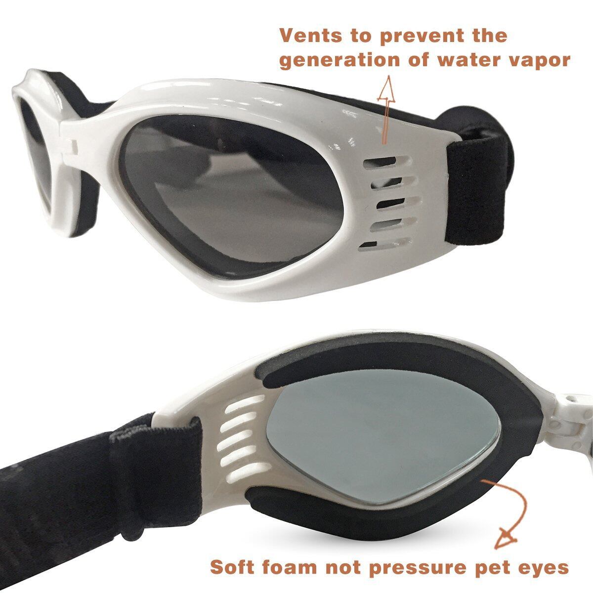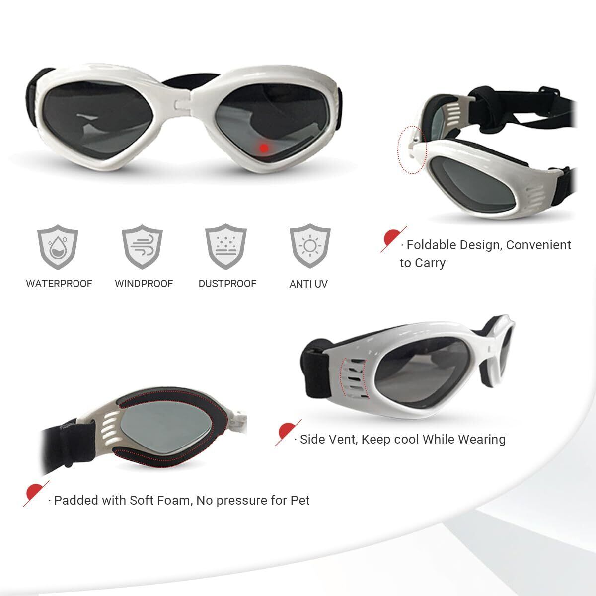 PETLESO 犬サングラス uvカット 小中型犬用ゴーグル 紫外線対策 散歩 お出かけ用 白い