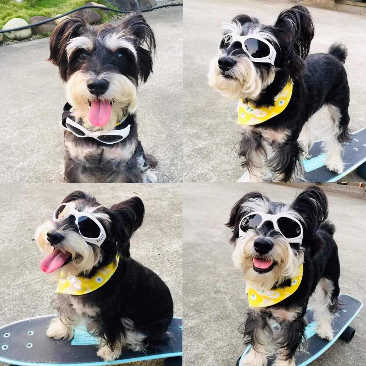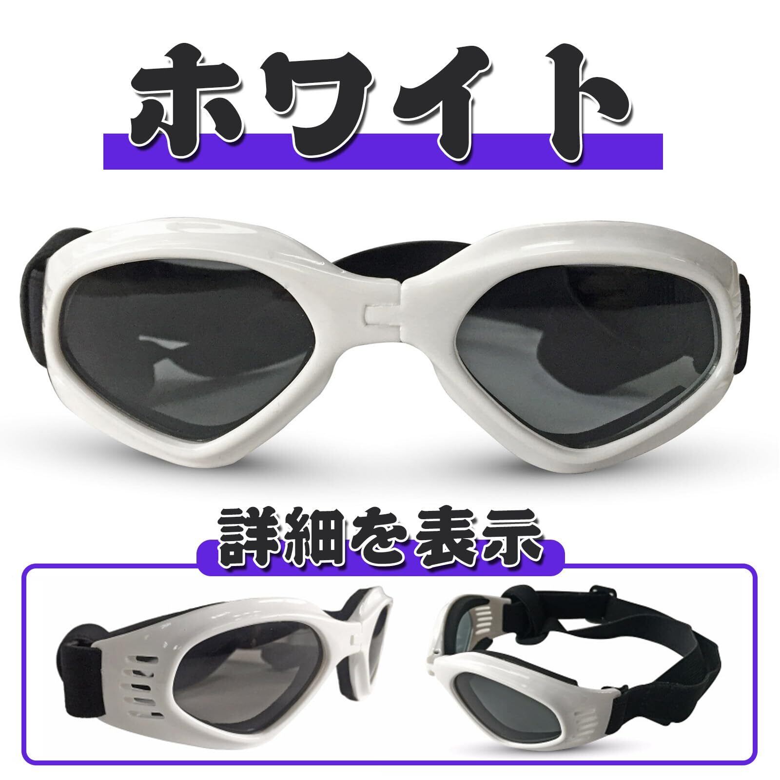 犬用サングラス uvカット 犬 ゴーグル 小型犬 サングラス 中型犬 犬用メガネ 折りたたみ 犬の眼鏡 軽量 調整可能 水泳 曇り止め 防塵 防風 紫外線対策 アウトドア 散歩 お出かけ用 猫 ペット メガネ 目の保護 写真撮影 アクセサリー ペット用品 (ホワイト)