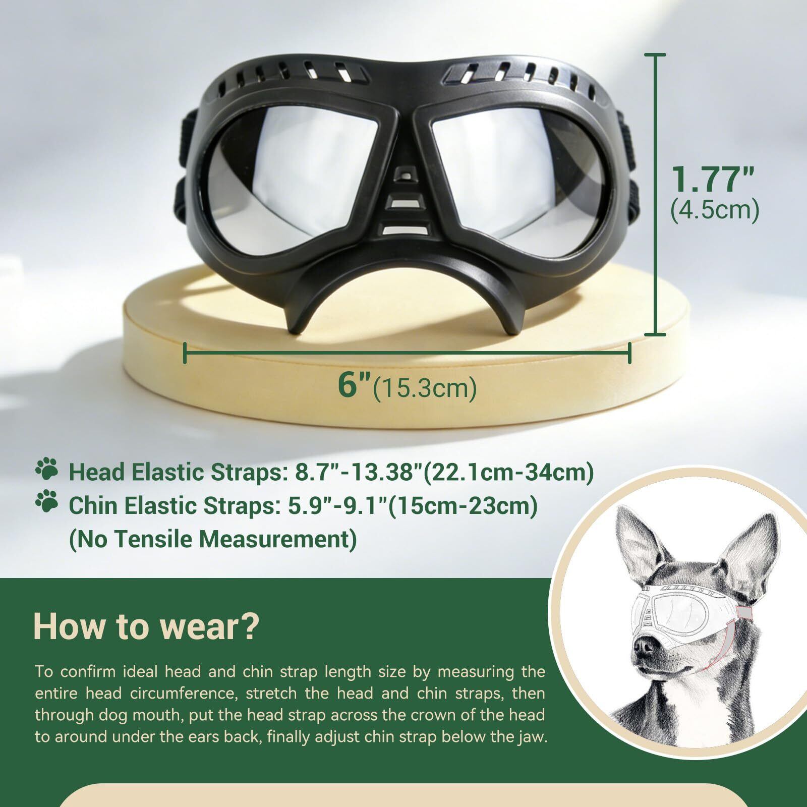 犬用ゴーグル:フレームは柔らかいTPE素材で作成されています。弾力性がよく、多くのワンちゃんの顔にフィットします。ベルト二つあり、ワンちゃんの頭としっかり固定できます。