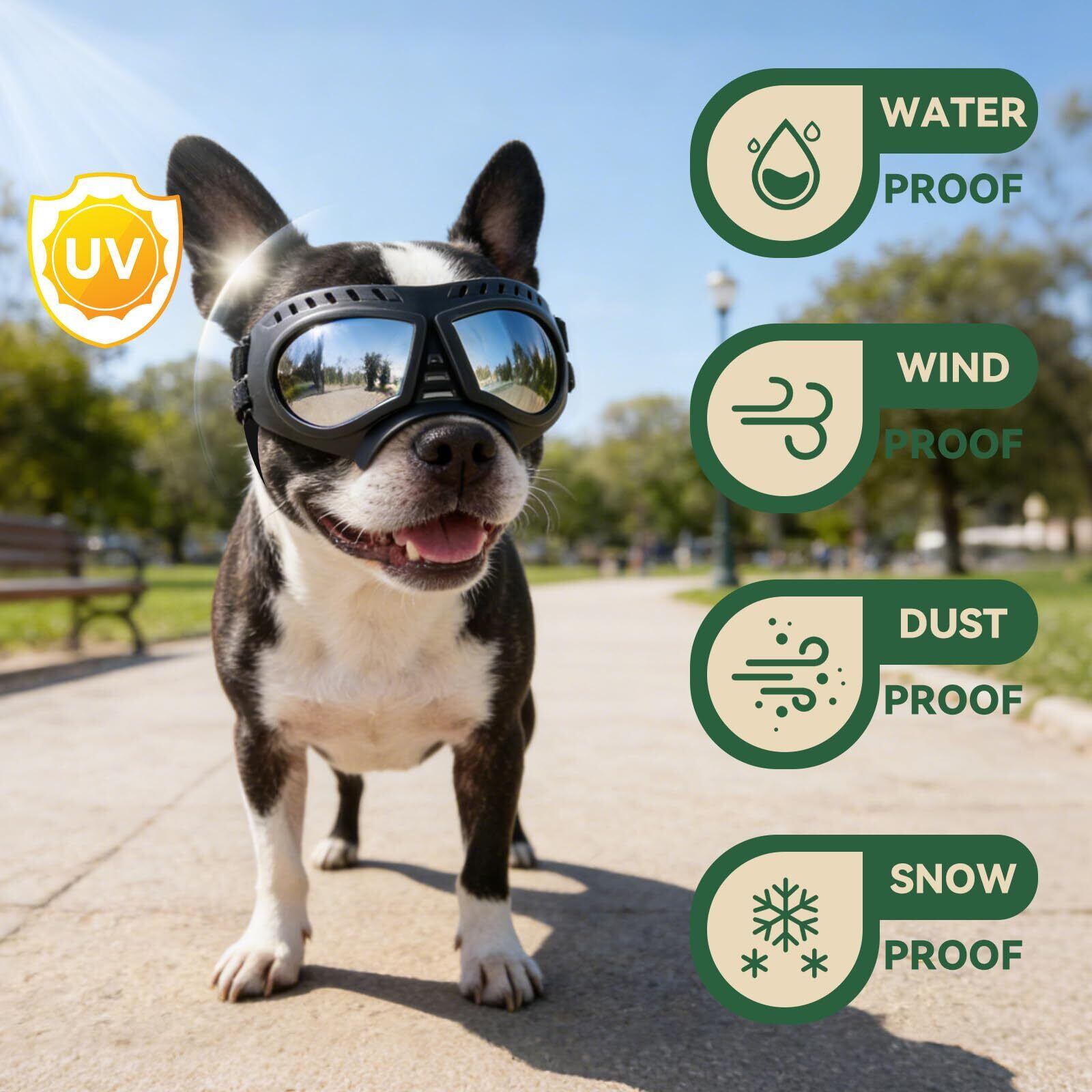 PETLESO 犬用ゴーグル中型犬用紫外線カットサングラス 中小型犬用サングラス、ドライブ 散歩 旅行に適している (シルバーレンズ)