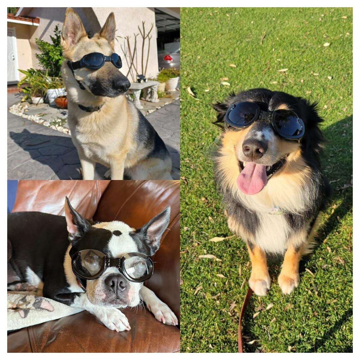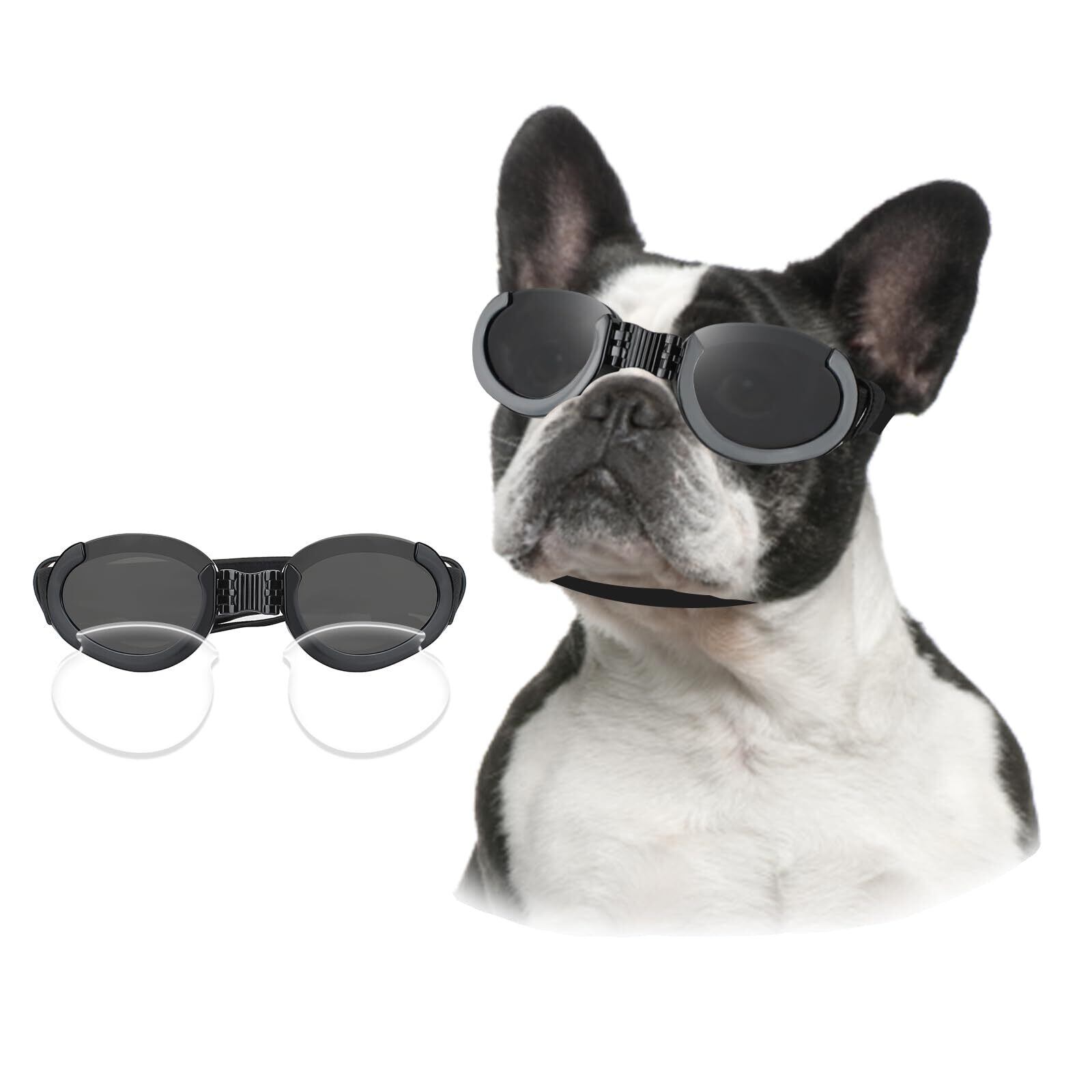 LESYPET 犬用ゴーグル 交換レンズ付き 小型犬~中型犬用 UVカット 犬用サングラス 屋外運転時の目の保護 ブラック