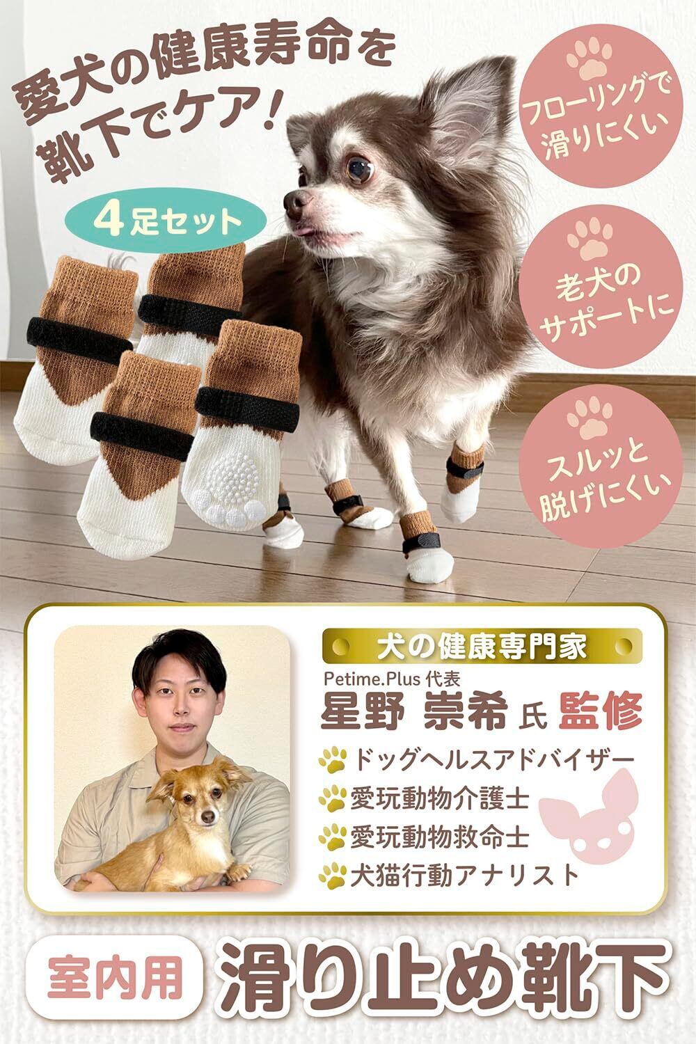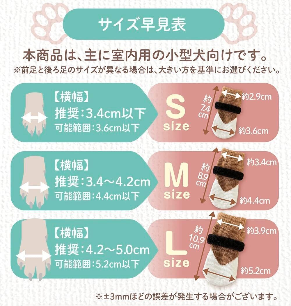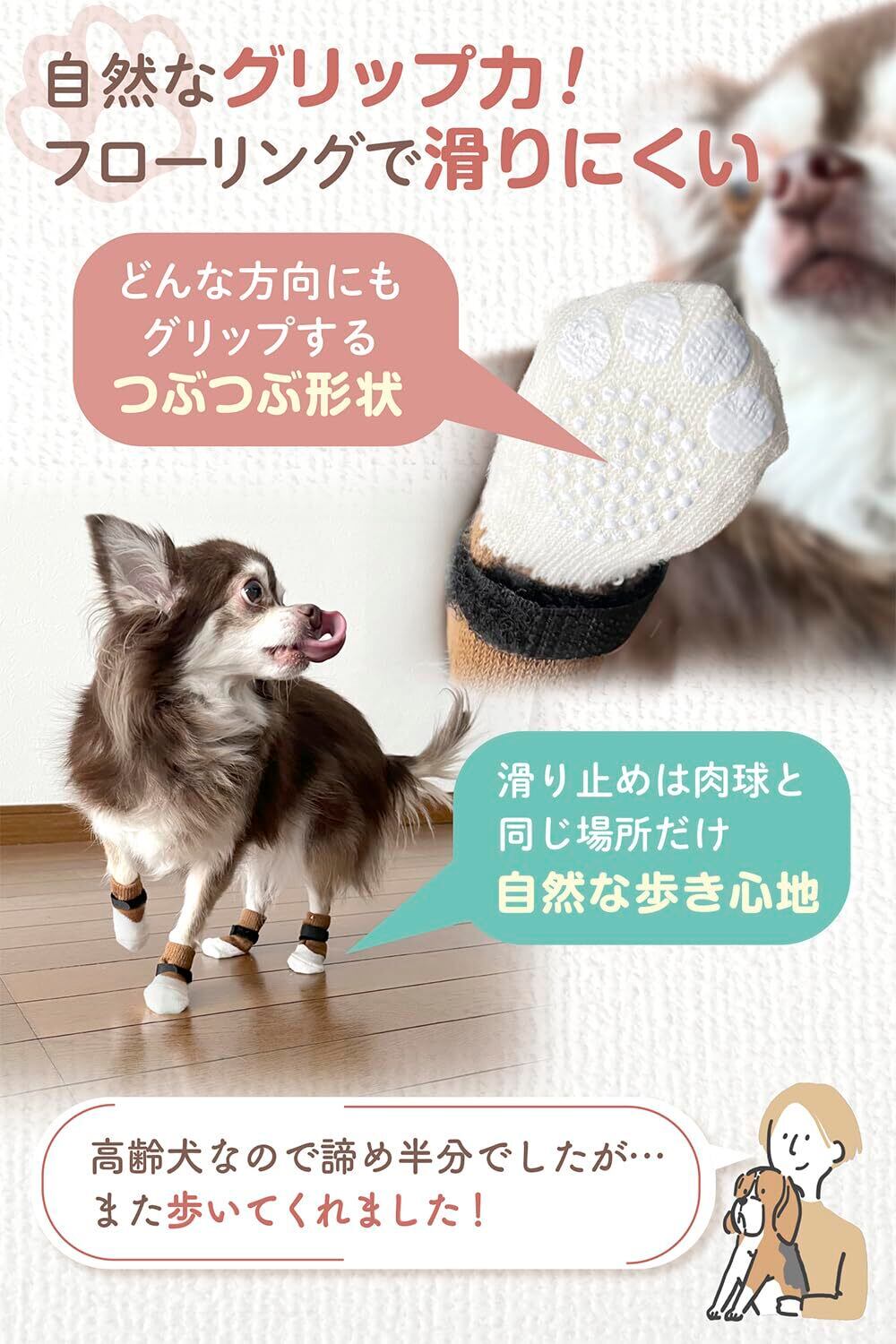 ETLIFE 犬 靴下 滑り止め 【靴下がスルッと脱げにくい】犬用靴下 犬用 屋内用 傷 舐め防止 マジックテープ付き (ブラウン, Sサイズ)